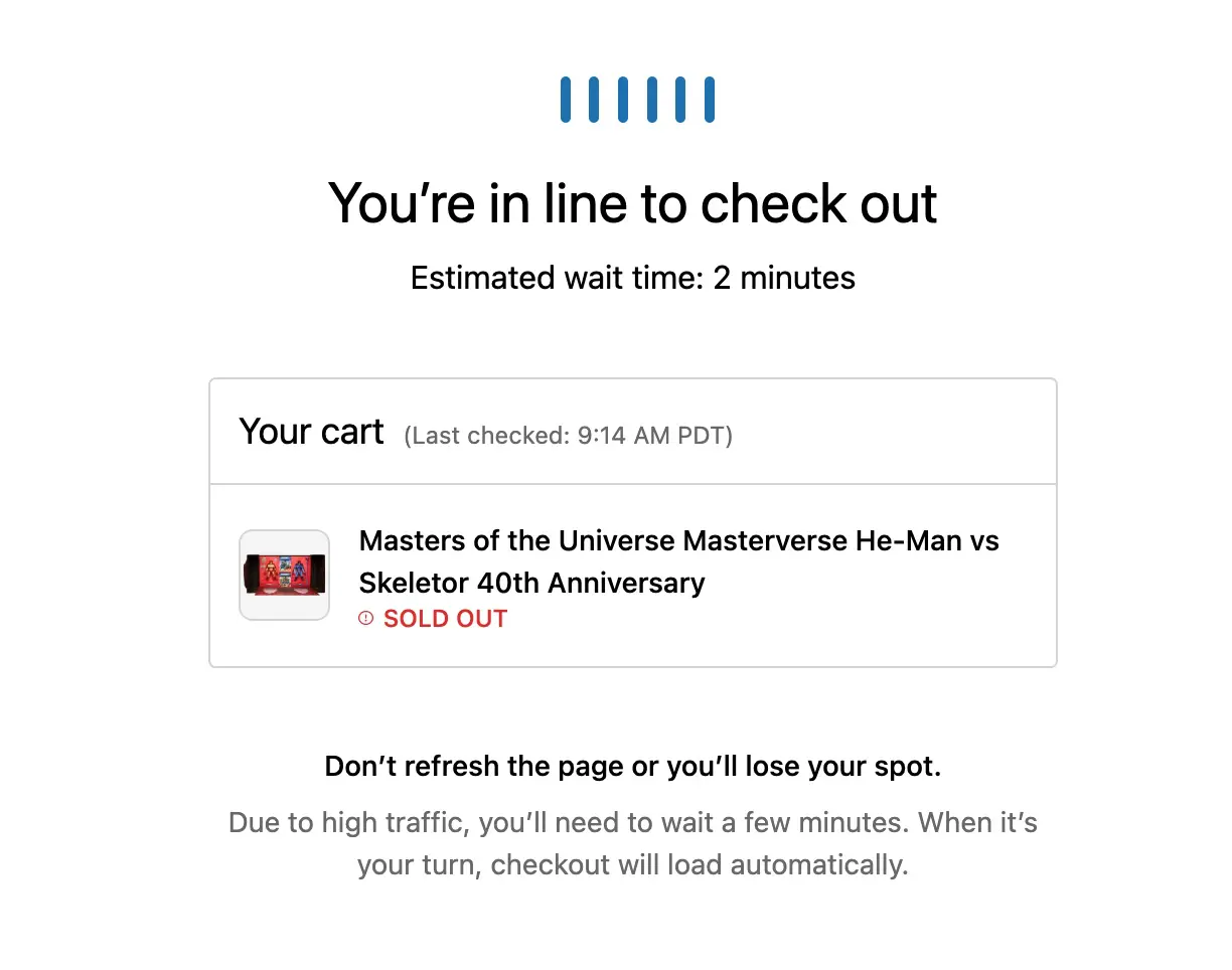 It only took 17 minutes for this set to sell out! It laster longer than Wun-Dar so that is good! The unfortunate thing is that if you had this in the virtual queue, it sold out on you are here are the screenshots: