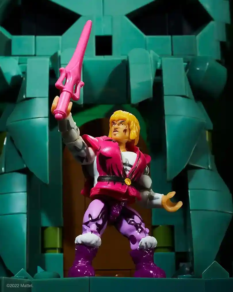 As we covered back in May when new Masters of the Universe Mega Construx mini figures were leaked and posted on the Official Mega Construx site (then taken down), we saw the mini figs we speculated that would come with recently launched MEGA Snake Mountain plus two other He-Man and Prince Adam figures! Today Mattel confirmed the MEGA Powers of Grayskull MOTU SDCC 2022 Exclusive as part of their 12 Days of Fandom leading up to San Diego Comic Con 2022! Before we dive into the new set, here are the images that were leaked back in May that showed more of an animated cell shading versions of both Prince Adam and He-Man!