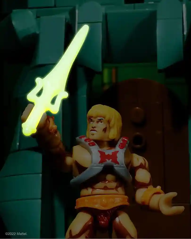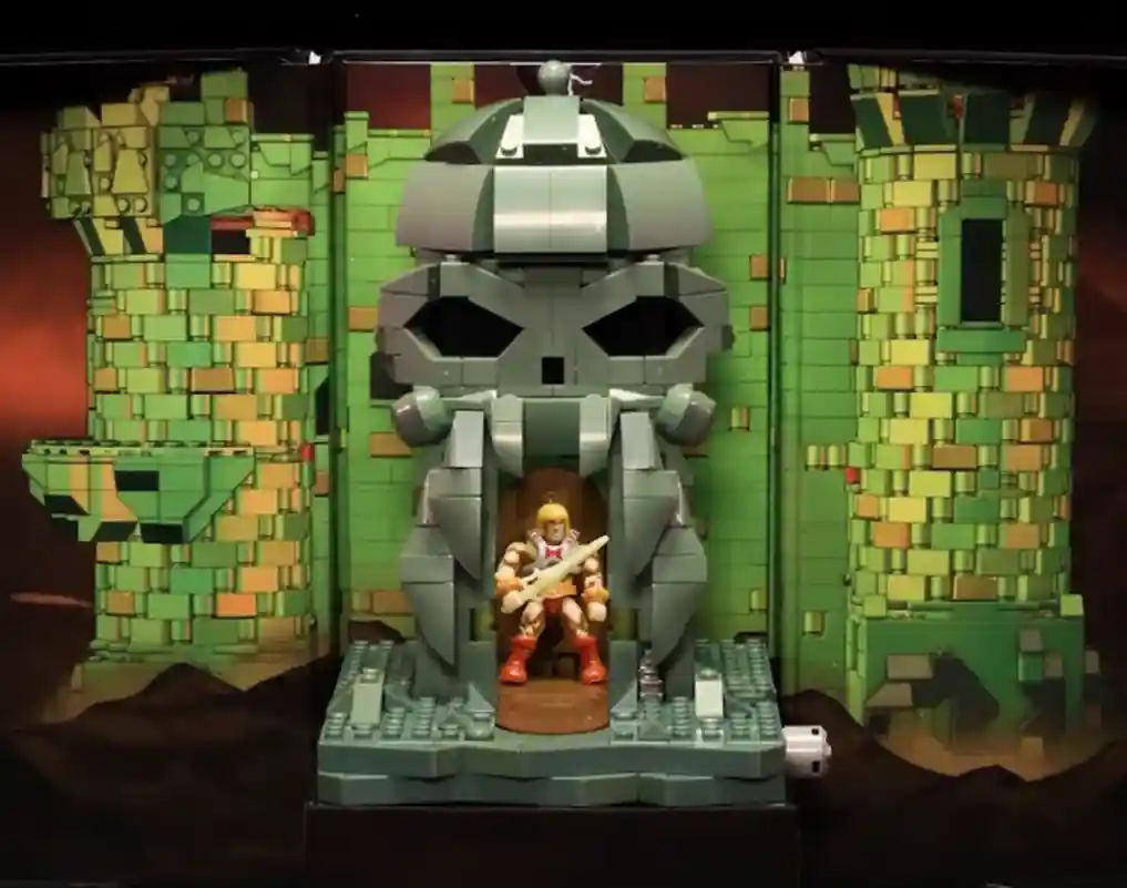 This set appears to be a diorama as it features the front portion of Castle Grayskull as a build! It would be amazing if the set actually came with the lightning bolts that transformed Prince Adam to He-Man but don’t get your hopes up lol! At least the cool trap door feature “transforms” Prince Adam to He-Man, and that’s freakin rad!