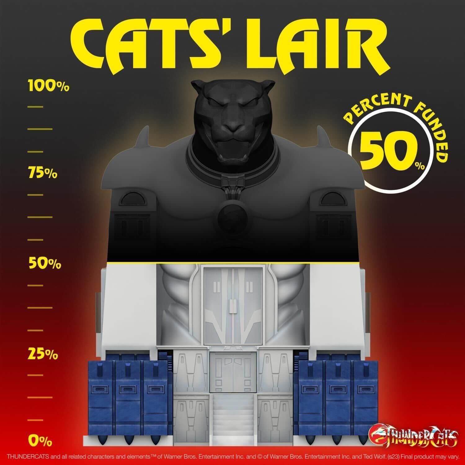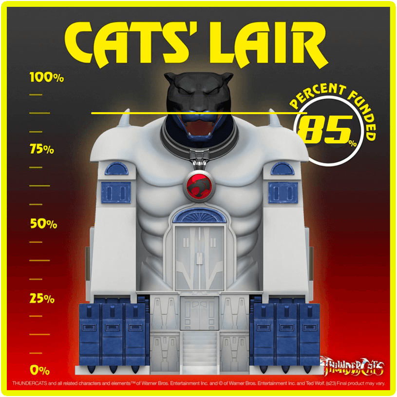 As of 10:15 pm PST the Cat’s Lair has now FULLY FUNDED!!! We reached 3,000 backers, so all who backed by July 30, 11:59pm PT, and all orders placed from Super7 or an authorized international seller before the Early Funding deadline will receive The Key To Thundera!