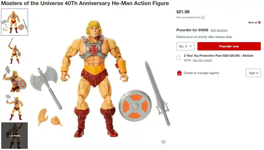 the 40th Anniversary Masterverse He-Man is making the preorder rounds and he is now on Target.com! Still looks like they are using the old stock images before the update they made to the figure, which you can read out here!