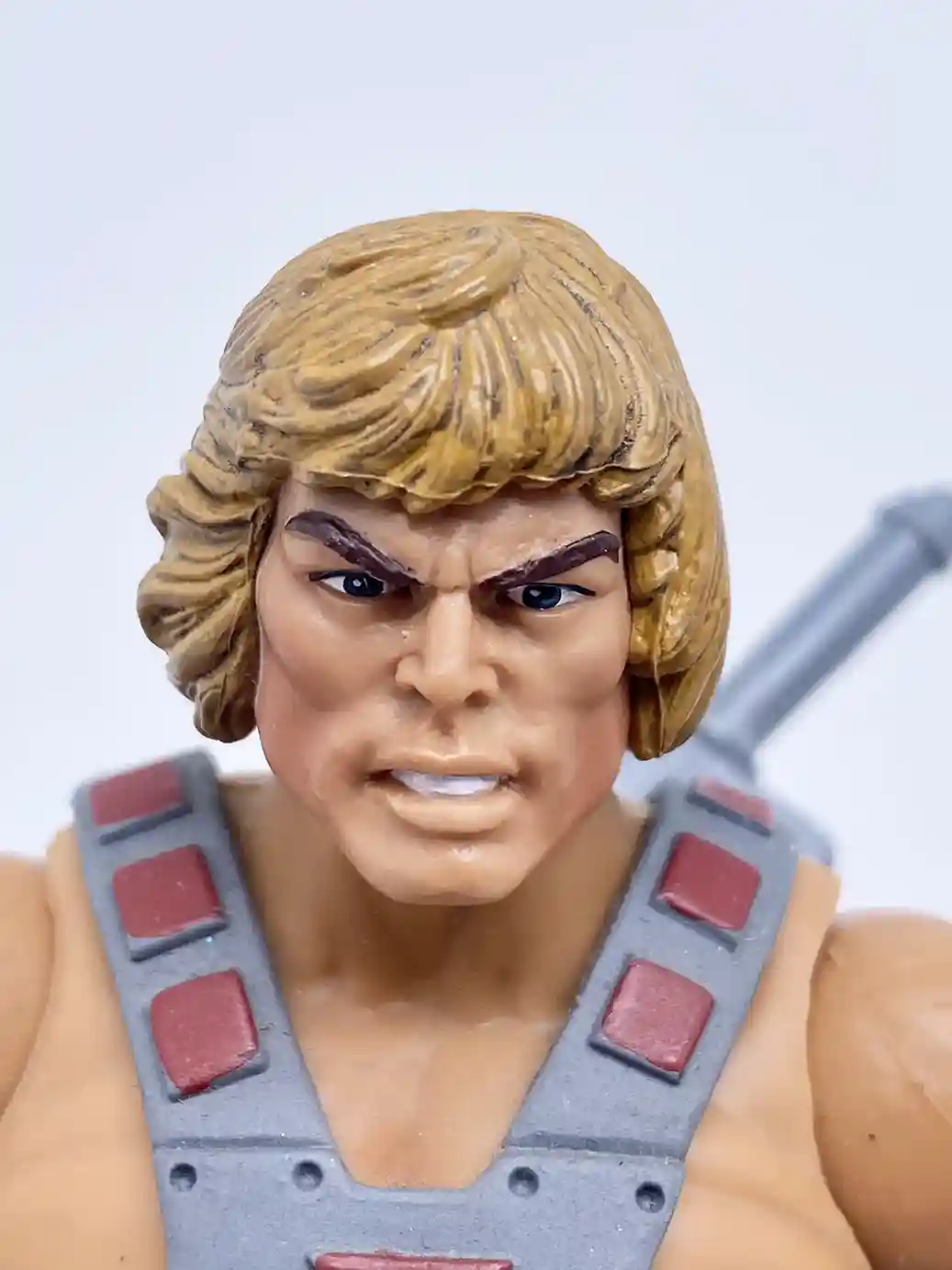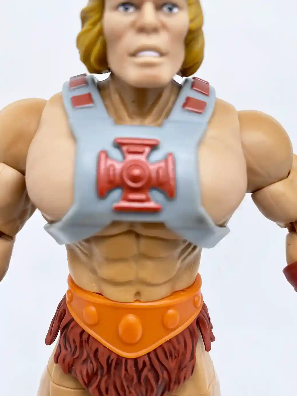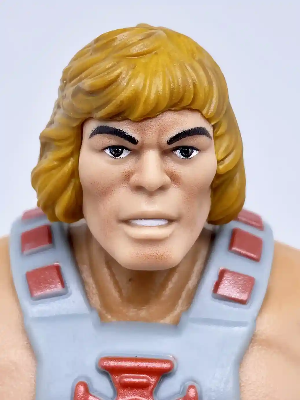 The 40th Anniversary He-Man head is the perfect rendition of the 1982 vintage action figure! Mattel absolutely nailed it on his head sculpt! From the dough boy style hair do, to the stern He-Man face, this looks just like the vintage action figure! We will have a comparison time with the vintage figure further in this article.