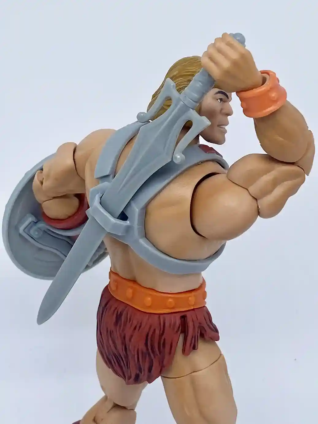 The great thing about these new Masterverse figures is their modern articulation. With 30 points of articulation, and vertical hinge on his wrist, you can finally have your He-Man action figure hold his power sword aloft and utter those 4 famous words “I HAVE THE POWER!!!!” And when you set him in this pose he is just spectacular!