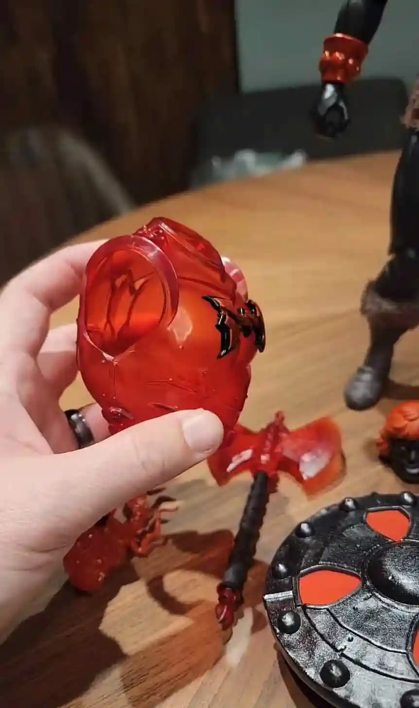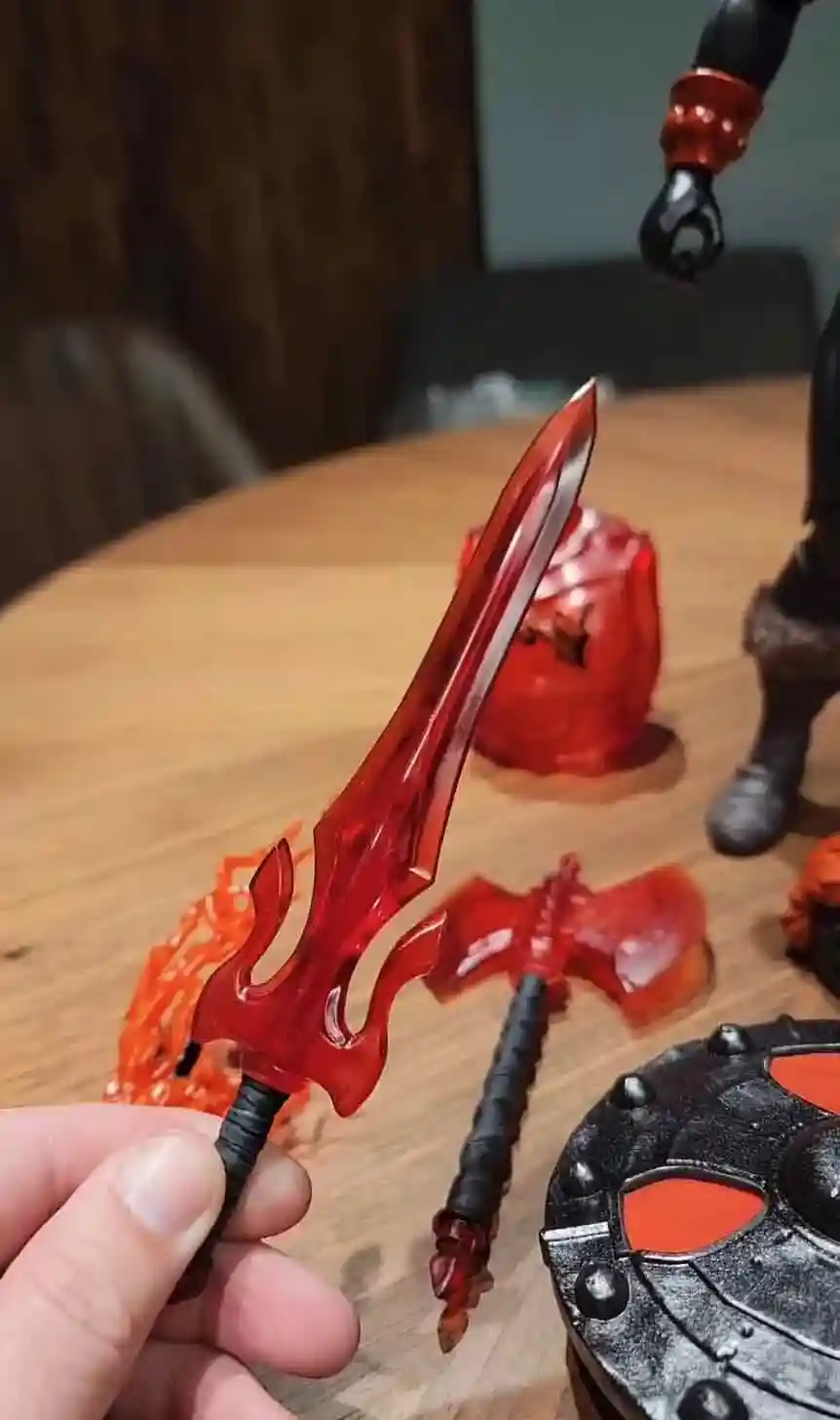 The lastest 1/6 scale figure from Mondo was revealed at Designer Con 2022 and the folks over at Mondo keep upping their game when it comes to their 1/6 scale figure line! While reusing many of the part from the Deluxe He-Man Mondo 1/6 Scale Timed Edition, there are many differences worth noting that makes this figure a must have in your Mondo collection! First off, they nailed the color palette for Anti Eternia using deep orangey reds against He-Man’s jet black skin. One difference from the previous versions of He-Man that Mondo has created, he will come with translucent accessories, which is worth the price of admission alone!