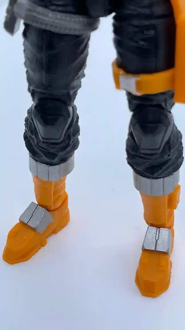 The BAT has a very basic waist sculpt and he has a yellow utility belt with a silver belt buckle that has a connected holster that is a separate piece. The legs are pretty standard, and the right leg looks like it has a silver communication device while the left leg just as the holster for the pistol. The boot design is really cool as it has silver plating around the top. The boot design is angular with metal plates over the talus of the foot.