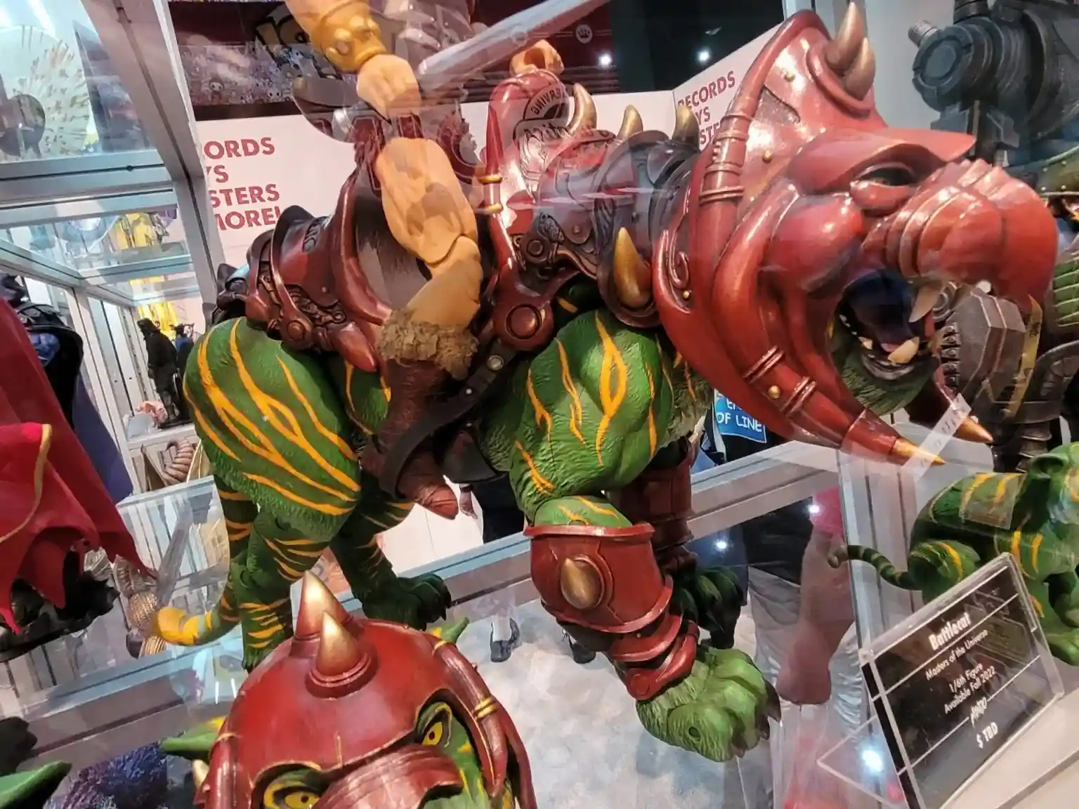 Mondo Battle Cat was also on display at SDCC 2022 and it was great to see a final painted, posable version of He-Man’s trusty feline friend and battle companion. The shading and saddle detail was amazing to see in full color and we could also check out the additional bracers on the front legs. His masked head was looking fantastic and was also full of shaded detail and nice hard angles.
