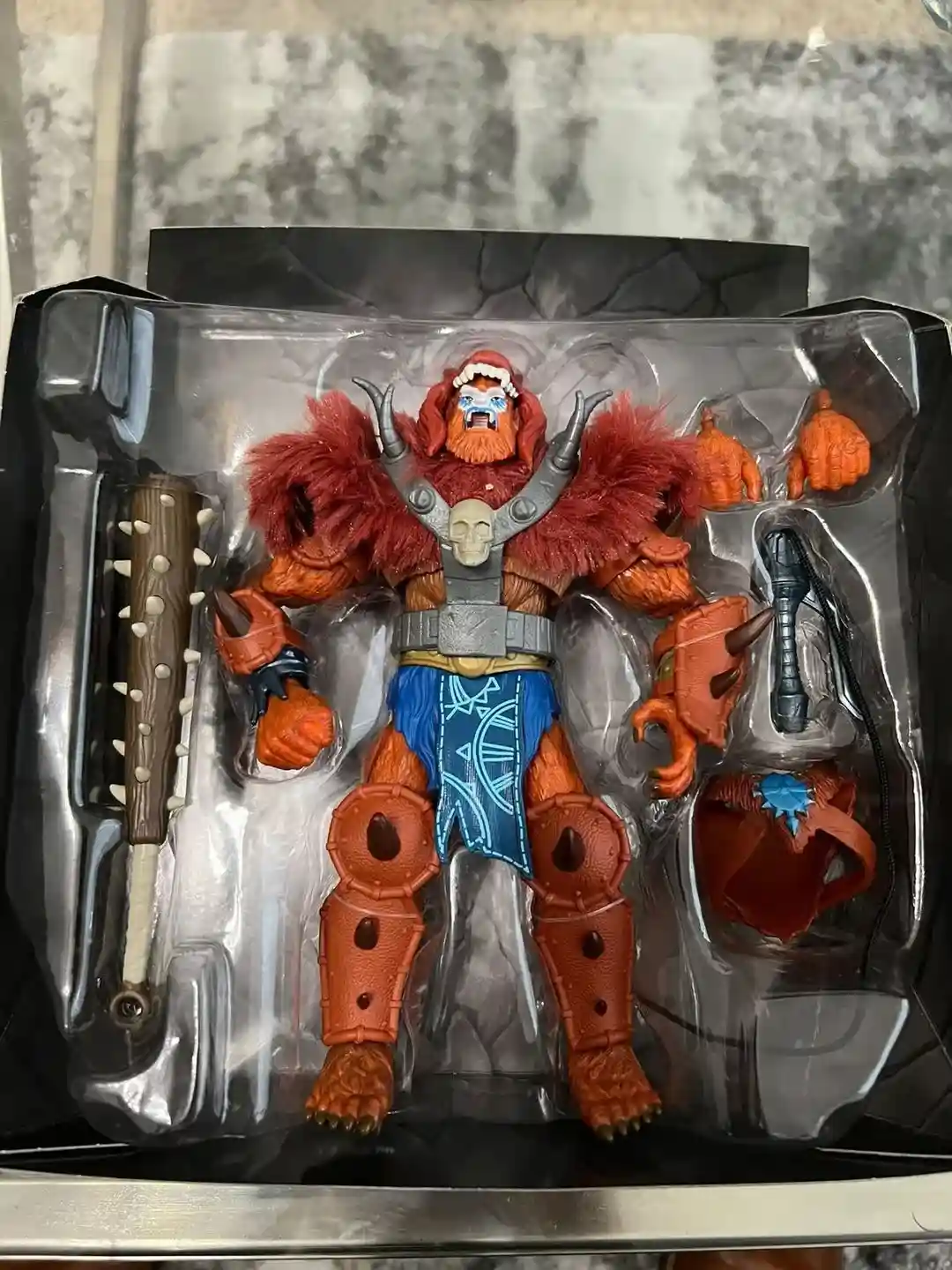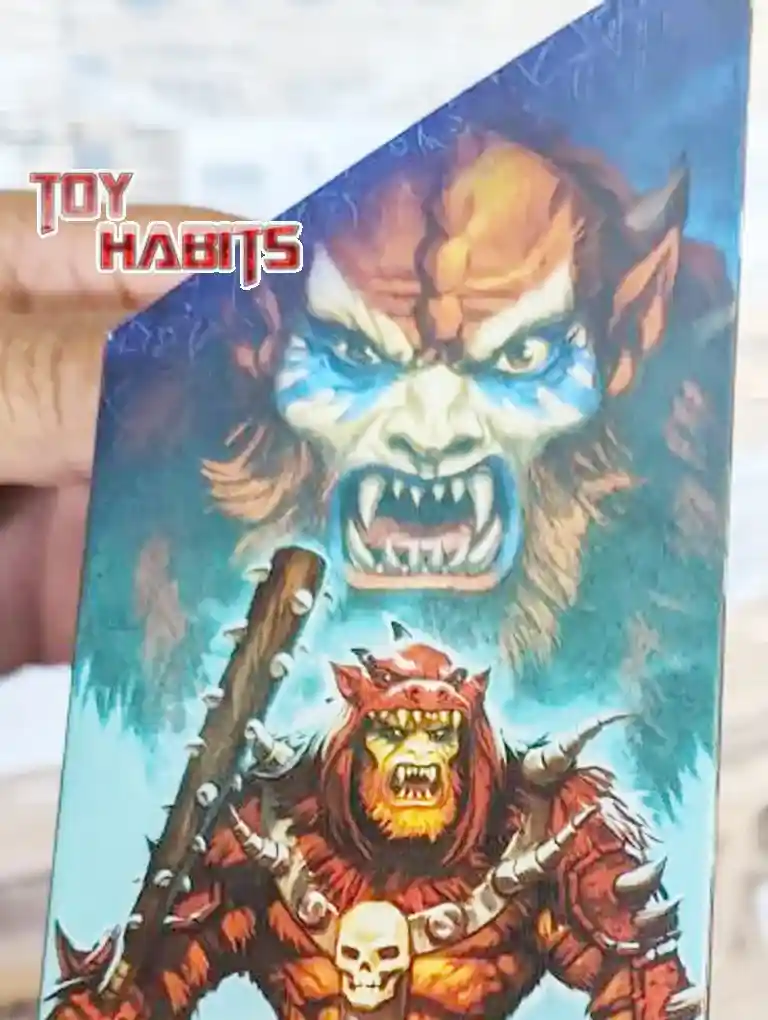 The vintage style image on the side of the box is amazing as it really brings back the feels of the 80’s figure we grew up with but with a more updated look! The fierce look on Beast Man’s face is the only way to give this creature the honor he deserves. You can see the baby blue outline of the war paint around the eyes and around the mouth, which looks great! We also get a sneak peak into the other Beast’like creatures he pals around with as there is a female and another male at appear to be of the same species.