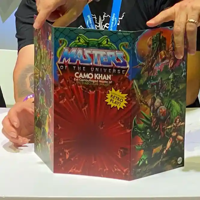 Thanks to Roy Juarez on Instagram: , we got to see a full reveal of the incredible front, and rear artwork for Camo Khan and his full packaging. This artwork is a like MOTU eye candy! There is so much going on and so many characters teased here. We took an in-depth look at all the of the characters teased on Camo Khan’s art work in the following article MOTU-origins-camo-khan-card-art-teases (toyhabits.com)! This was one spectacular so be sure to check it out!