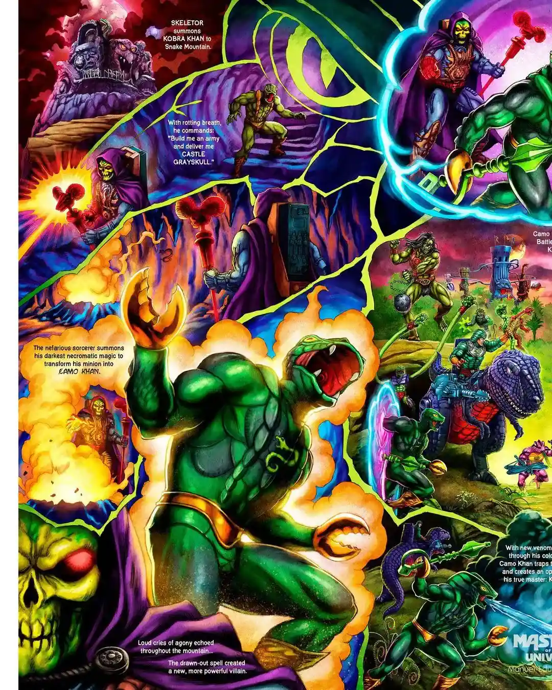 Announced yesterday, @mattelcreations will be releasing (the much anticipated) Evil Camouflaged Master of the Diabolical Snakes, Camo Khan! Inspired by Kobra Khan Camuflado figure from 1987 released in Argentina. Comes with exclusive “collector-friendly” Snake Men tri-fold packaging, a splash page featured on the back of the tri-fold card. (Swipe through to see closeups of the artwork)