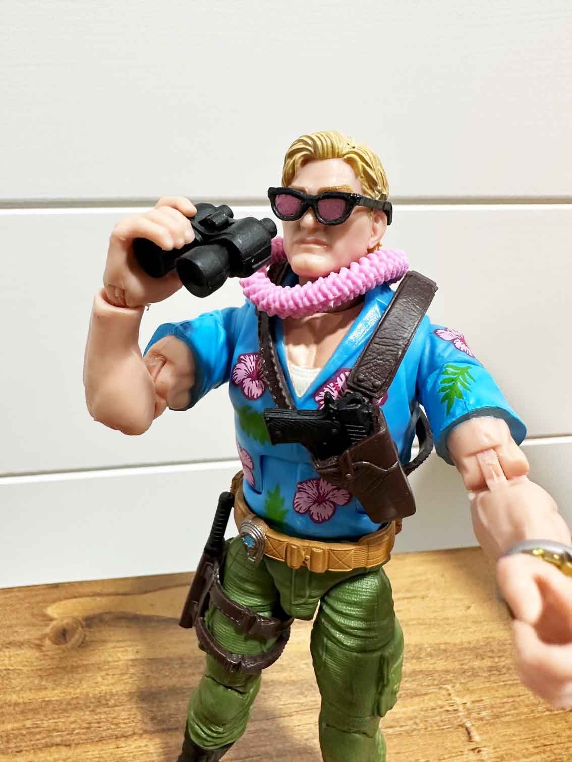 Thanks to GI Shark for posting this incredible diorama shot of the upcoming Chuckles GI Joe Classified Series SDCC 2023 Exclusive! He is looking totally MIami Vice and ready to hang ten! Can’t wait to see more images of the actual figure!