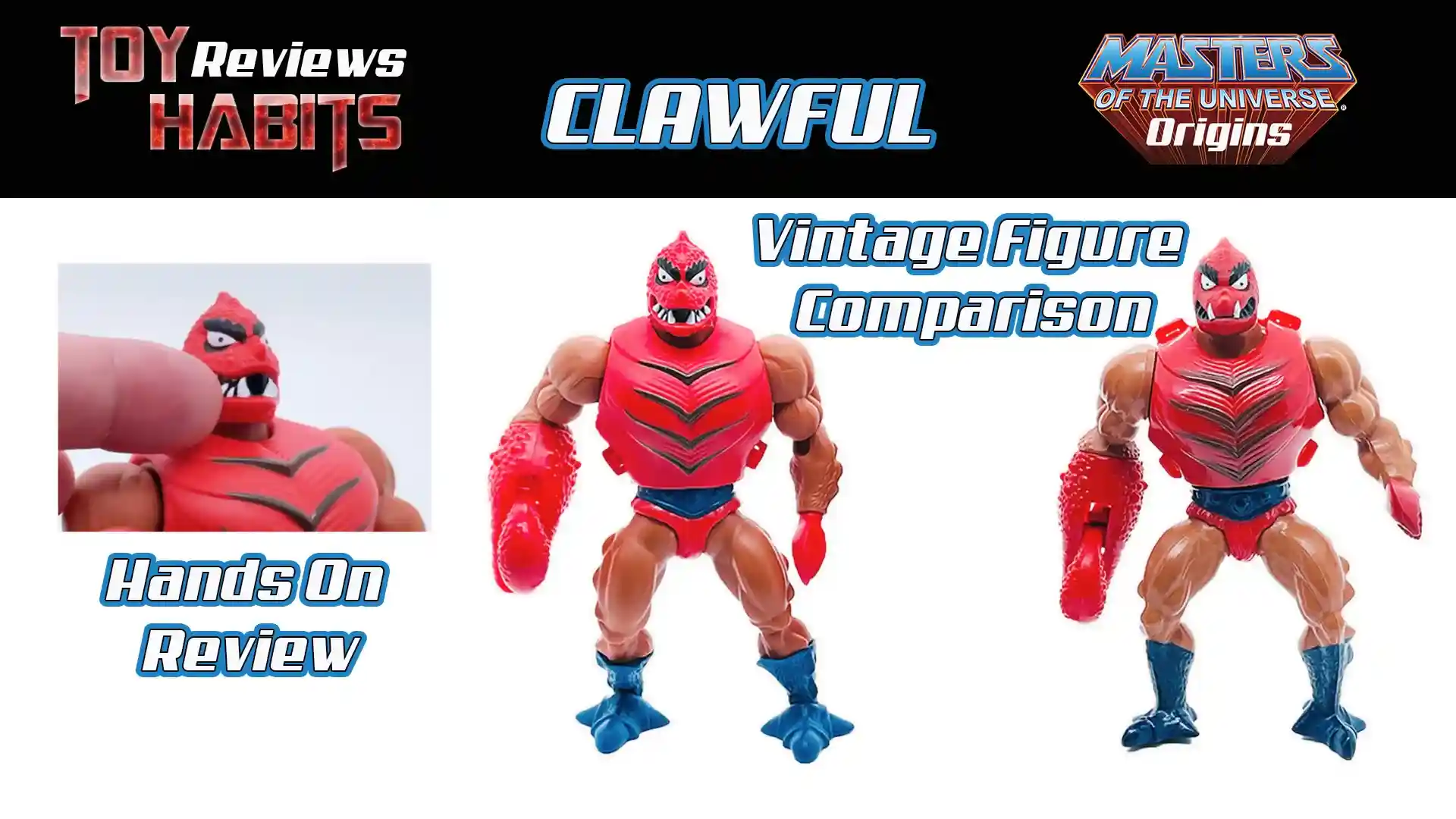 Fresh out of the depths of sea comes Clawful in our latest MOTU Origins figure review. Clawful is the latest Evil Warrior to join the ranks of Skeletor’s henchmen in the Masters of the Universe Origins line and it’a about time. He was was one of my favirote figures I had a kid and it’s great to see him in the line. Complete with an oversized lobster claw, Clawful is sunburnt baked, updated version of his vintage predecessor who is half man and half lobster. This is the first single carded figured we’ve reviewed from Wave 8 but also check out our Deluxe Terror Claws Skeletor and Flying Fists He-Man reviews.