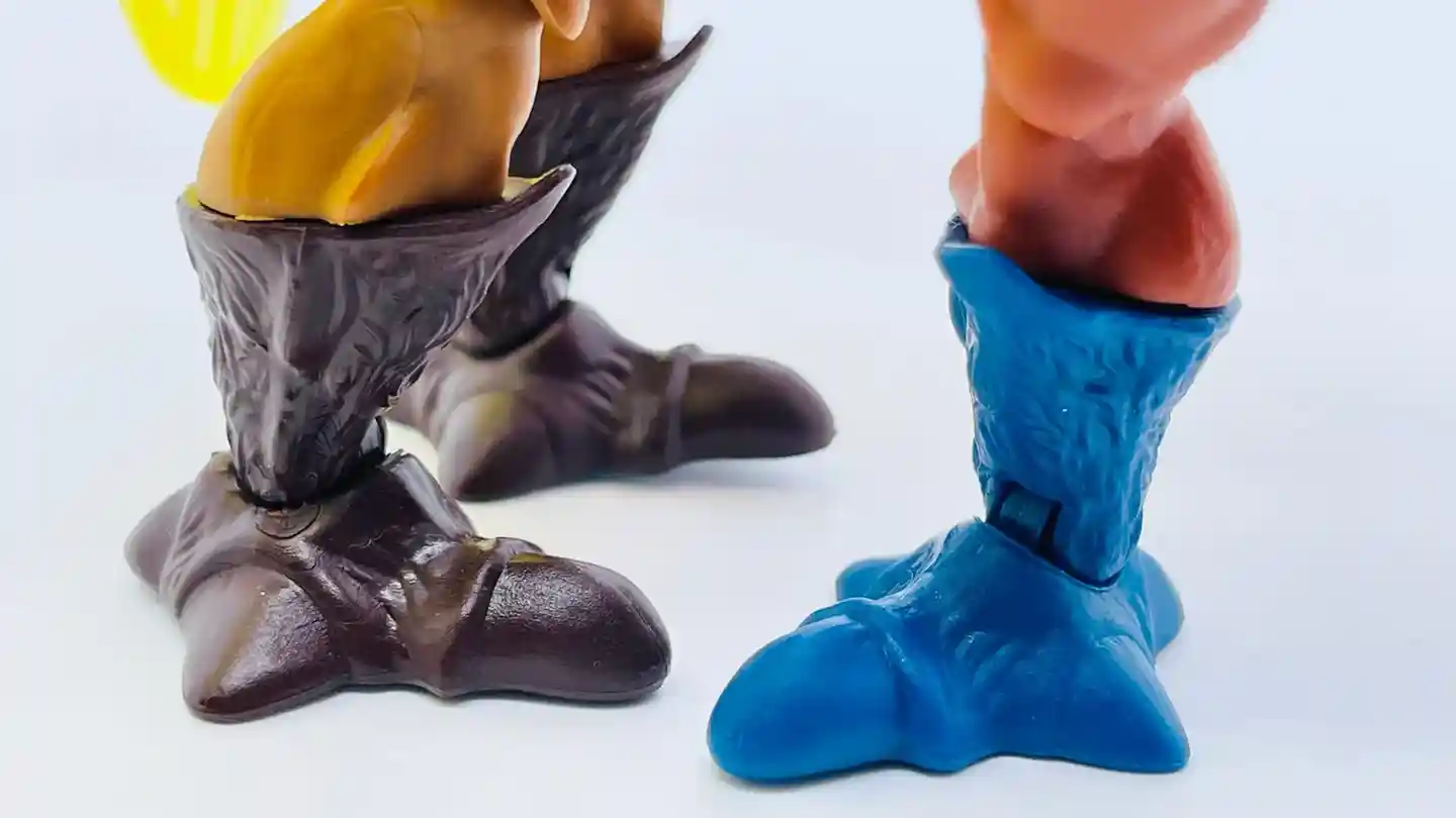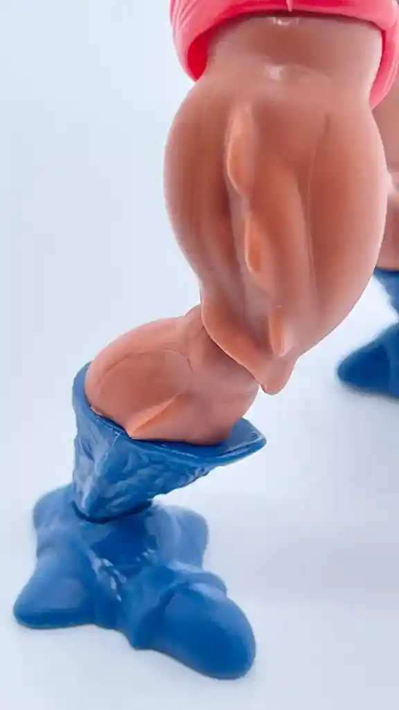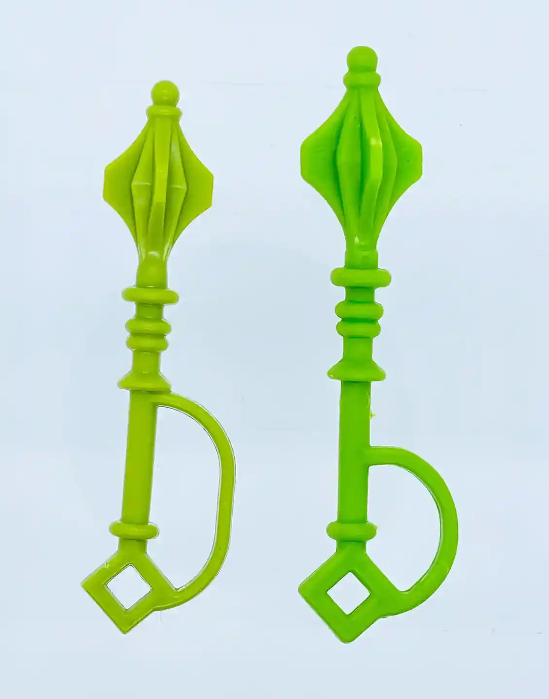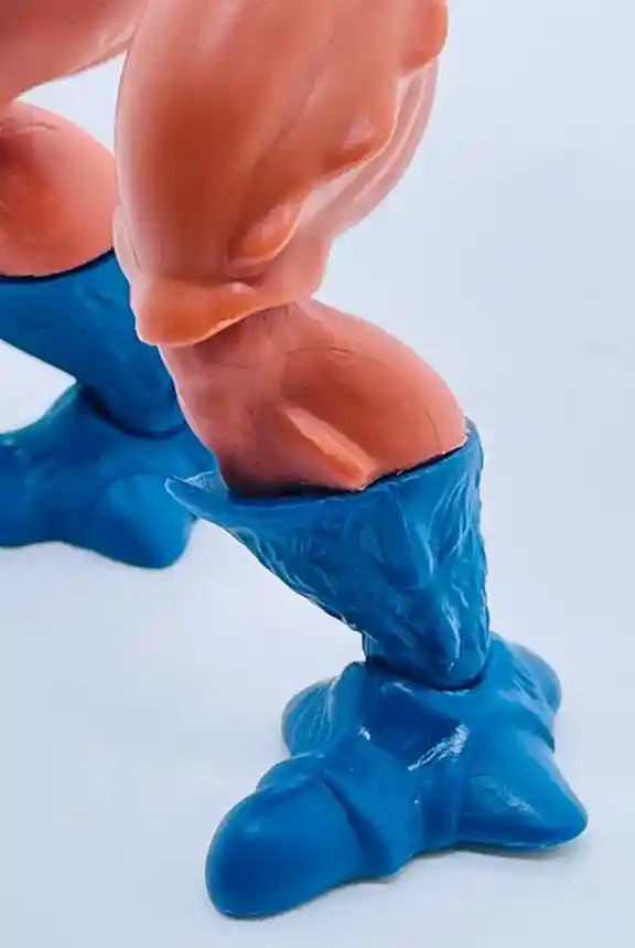 Clawful’s mace is an avocado green clubbing weapon and it always puzzled me my they fave a dude with claw a weapon he has to grasp is over my pay grade but here we are. He can hold it in either hand and you can just wedge the handle of the mace into his claw and it fits great!
