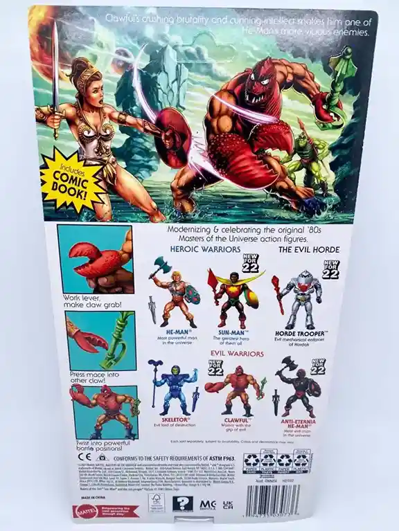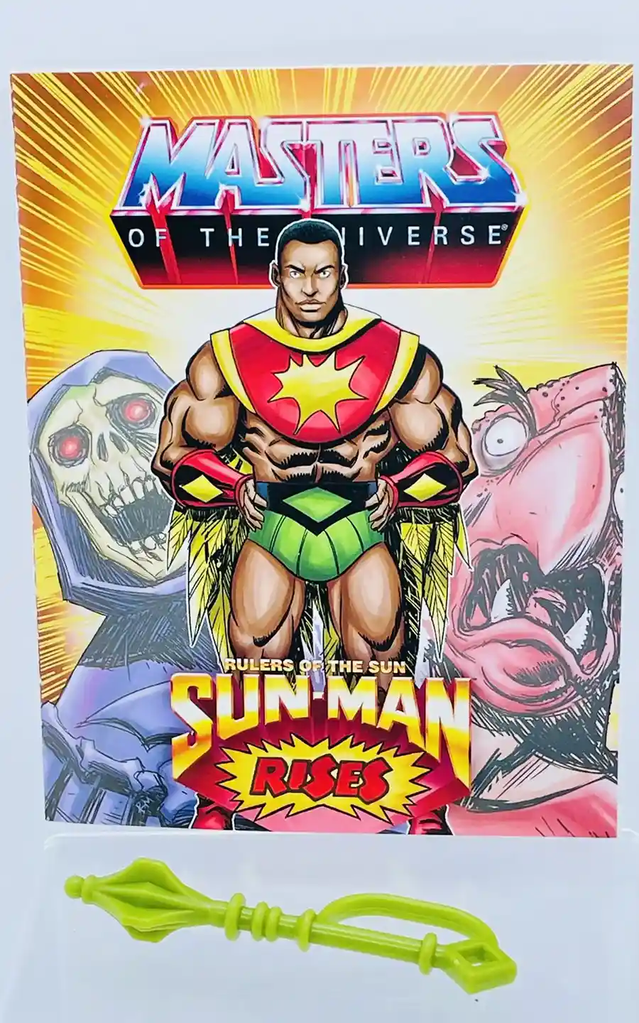 In the package, Clawful comes with a Mini Comic entitled Sun Man Rises and a green mace.