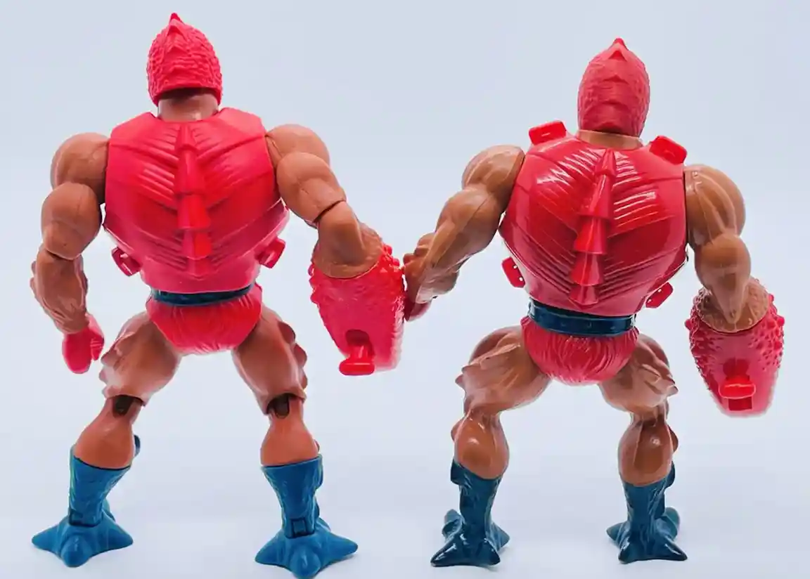 When comparing the new MOTU Origins Clawful with the vintage figure, the first difference that stands out is the head sculpt! Jam packed full of teeth with a wide open mouth, The new Origins head sculpt design looks more comical than serious! The armor is more subdued and I love how they are making the armor latch only at the bottom as there is no need for 4 points of contact like in the vintage figure with the squishy plastic they are using for the Origins armor. The maces are different sizes as the Origins version is smaller and more compact.