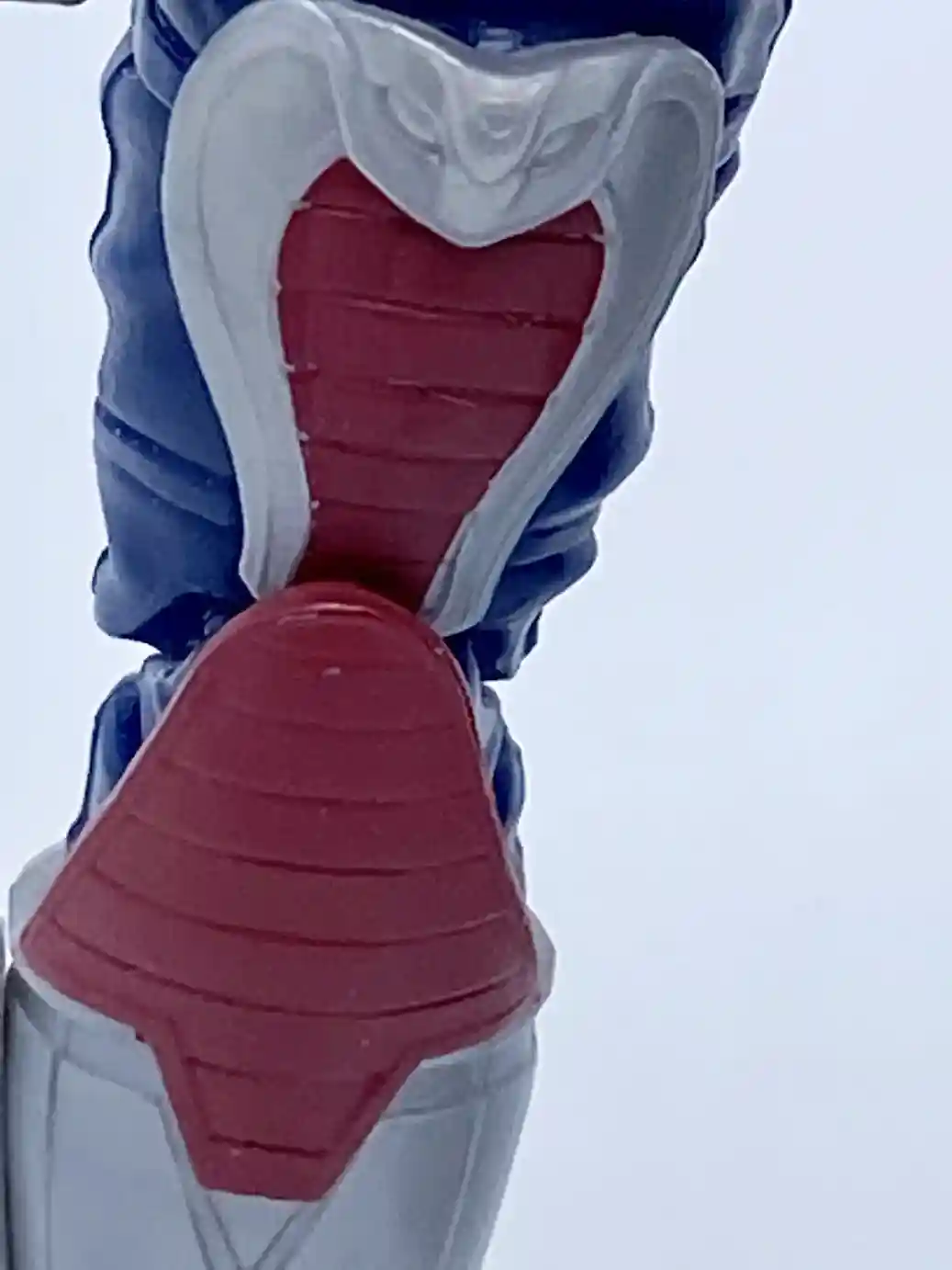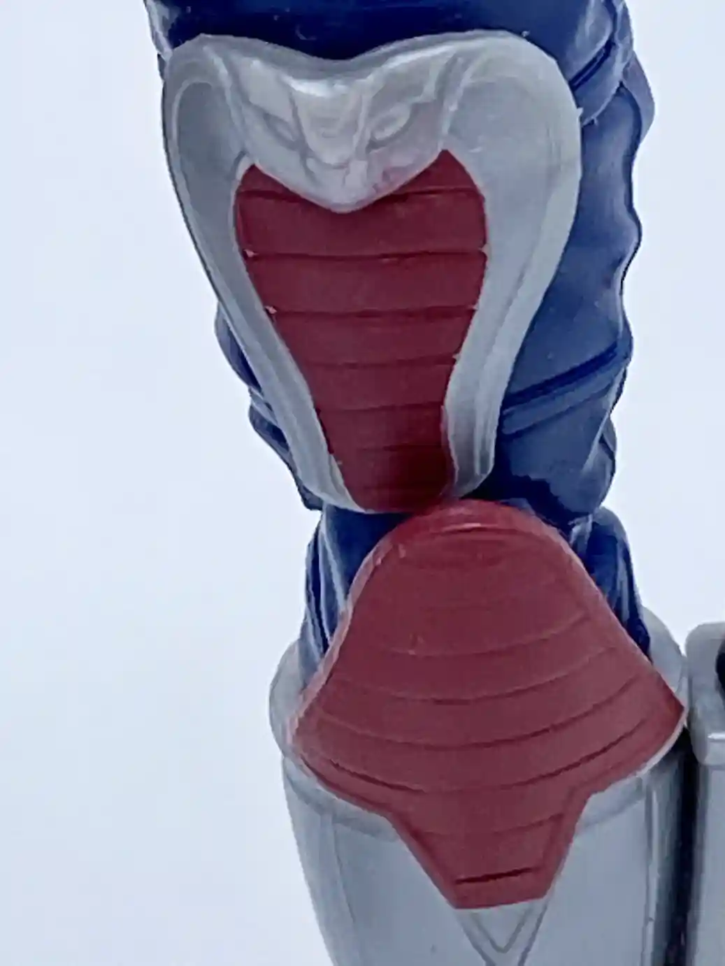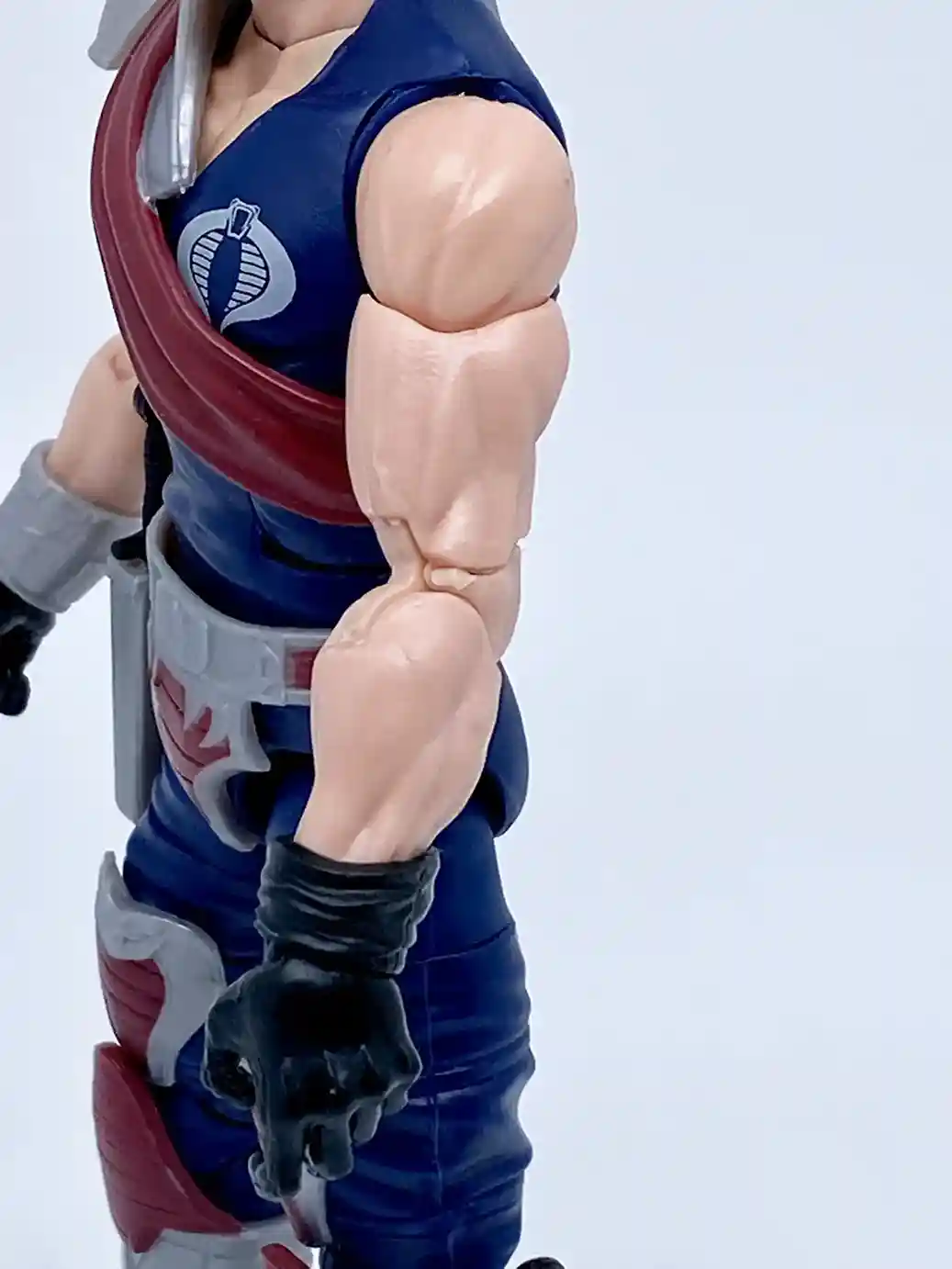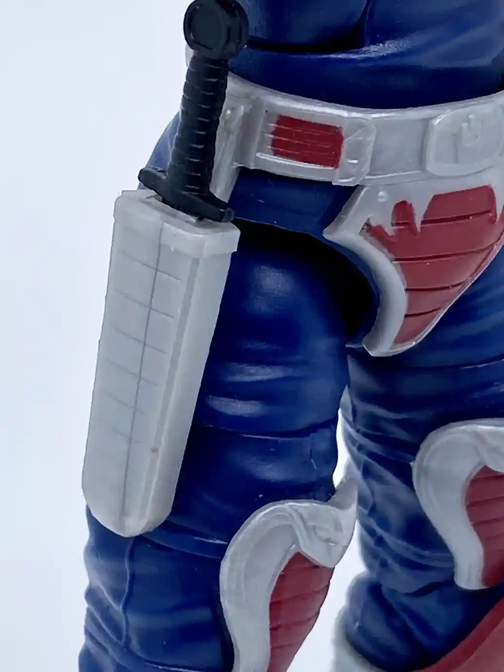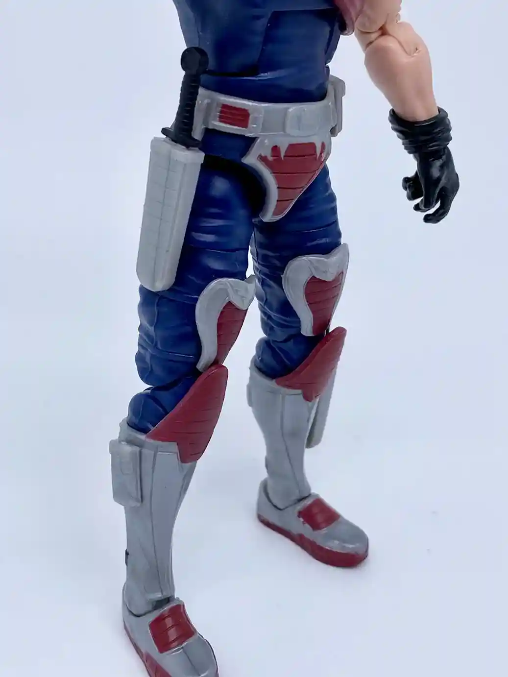 Tomax’s waist sculpt features that signature cobra design on his crotch ( ya I said crotch) where it looks like a silver colored cobra’s mouth is open and is crimson red with horizontal lines on the inside. He is wearing a silver belt with some molded details and crimson stripped accents