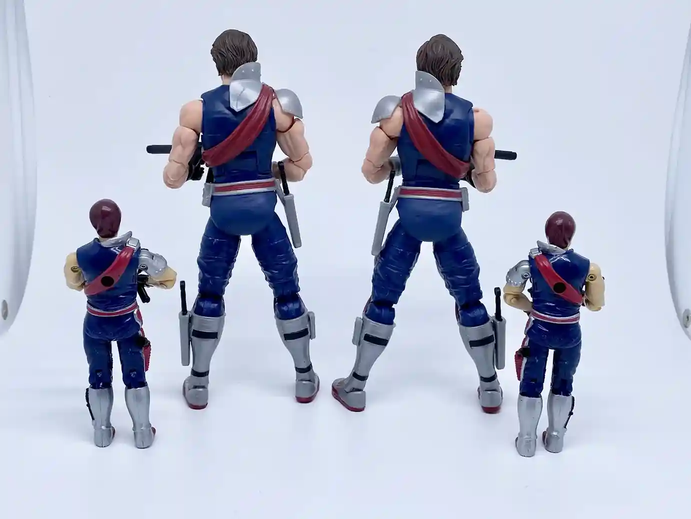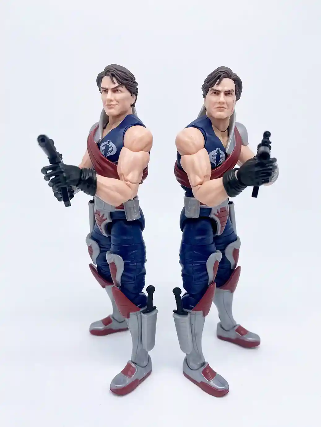 These new modern Classified Series versions of Tomax and Xamot are a stunning tribute to their 1985 vintage A Real America Hero counterparts. As you can see, their blue and crimson red outfits are a perfect translation from the vintage action figures. Both have their silver shoulder pauldrons, red sash, silver cobra logos, cobra crotches and cobra shin guards. The neat thing about the increased 6″ scale, is that it allows them to actually make real useable accessories instead of molded on parts. For example, the knife sheathes on their waists and ankles. The new versions even include their signature sub-machine guns as well.