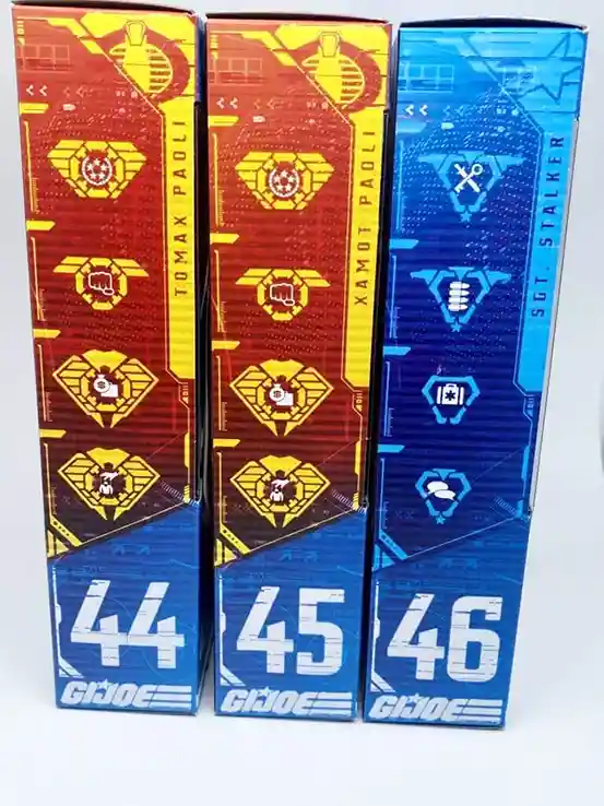 Also you can see below, each of the packages contain a mirrored image of one half of the Cobra logo. When you place Tomax and Xamot’s packages next to each other, they create one image of the Cobra logo. Tomax is # 44 and Xamot is #45 in the Classified Series line. Below is their file card system for Tomax and Xamot decoded!