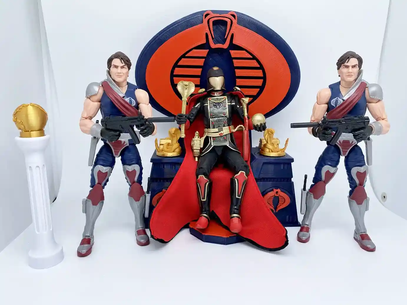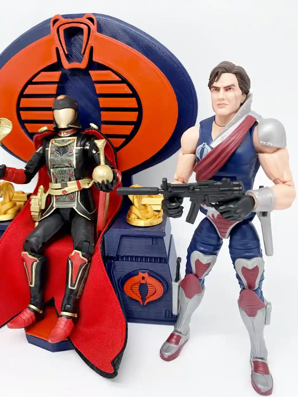With matching blue outfits, crimson slashes, silver shoulder pauldrons, silver Cobra logos on their chest and cobras shaped belt buckles and shin guards, these are a beautiful modern versions of our favorite twins! Of course Xamot has his signature facial scar and his shoulder pauldron and sash on the left side. They have removeable sashes and shoulder pieces. They have different facial expressions so you can finally tell our favorite twins apart!