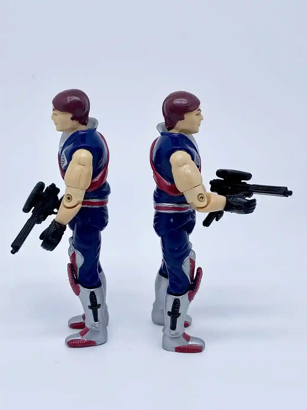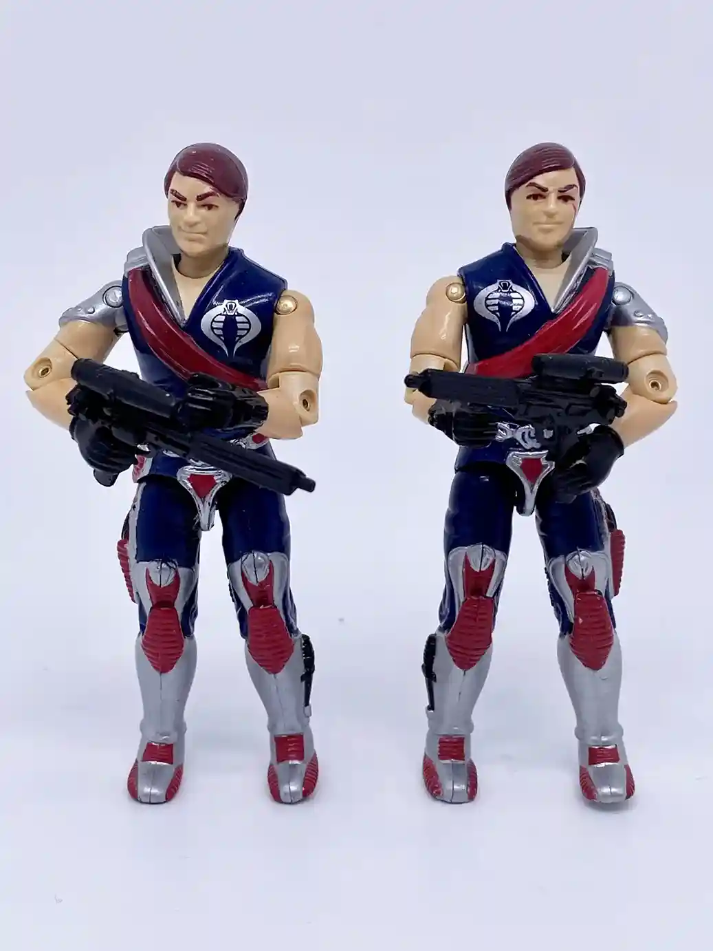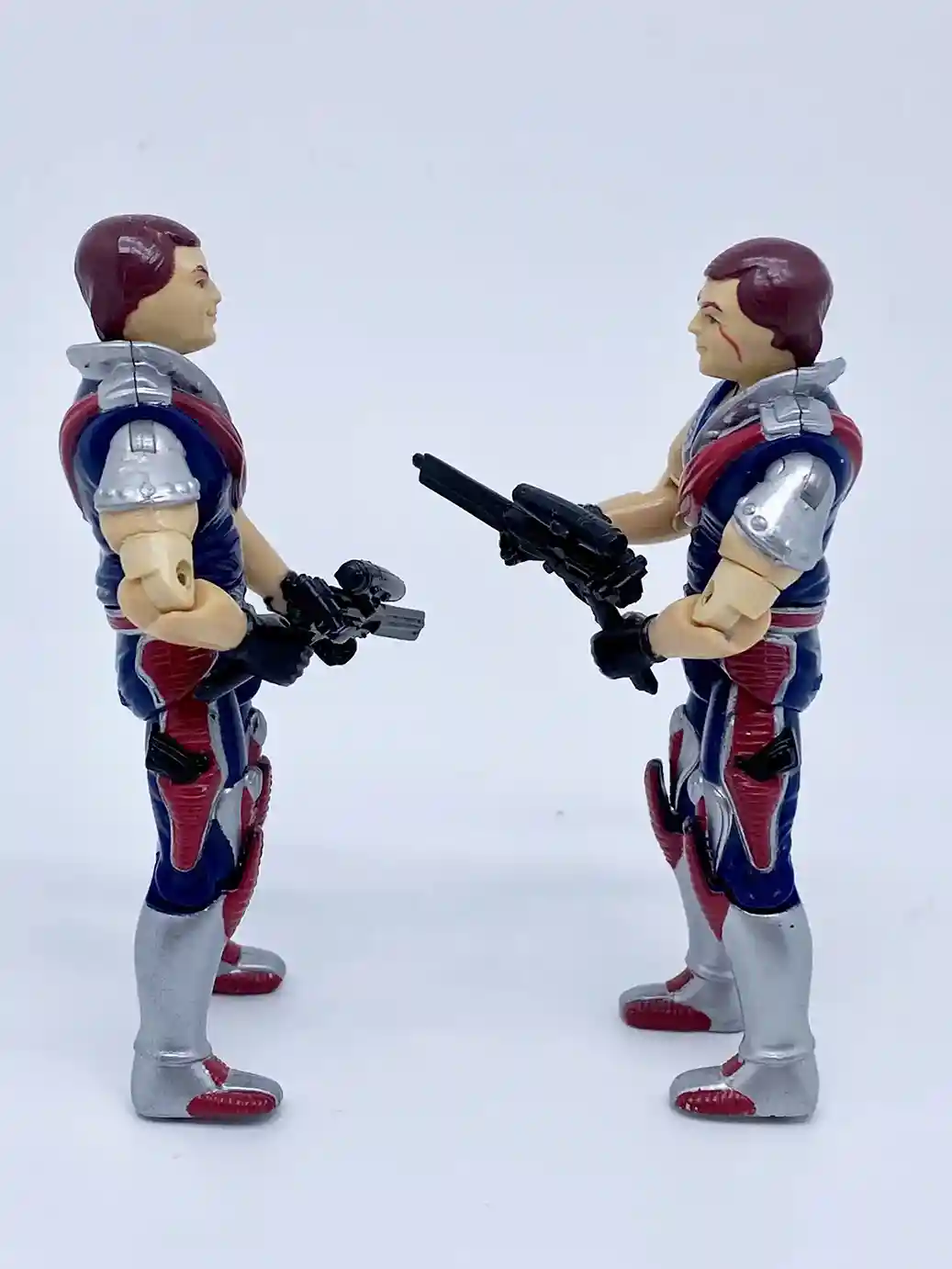 Tomax and Xamot, A.K.A The Crimson Twins, first appeared in the G.I Sunbow cartoon mini series “Pyramid of Darkness”. The power hungry twins, leaders of the Crimson Guard and executives of Extensive Enterprises, were constantly trying to win Cobra Commander’s approval. Often dressed in power suits, but most notably recognized in their mirrored matching blue and crimson red outfits. Being twins, as such the stereotype, felt each other’s pain and would speak in tandem and finish each other’s sentences, oh’ brother!