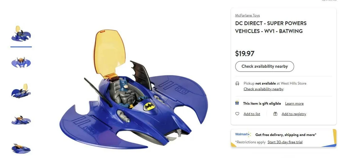 You can check the Walmart Website to see if Batman is in stock in your area. Link is below:
