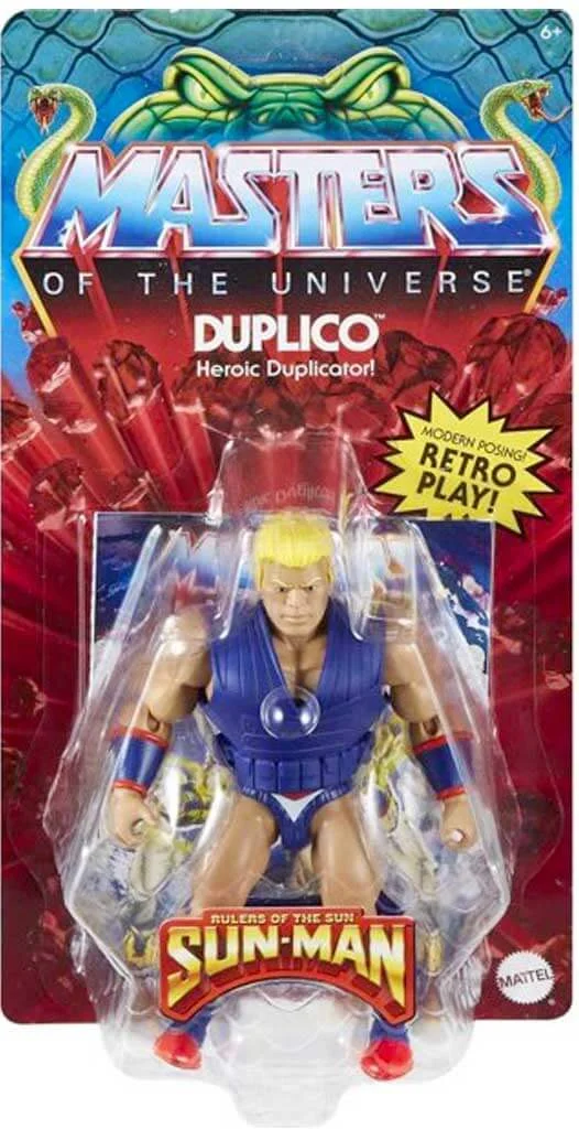 This is how Duplico appeared in the original vintage Rulers of the Sun line, but he was never produced. You can see him here in a promo image below. He was supposed to be part of a Series 2 release, which included Hypno, Kikto, and Zap-Man.