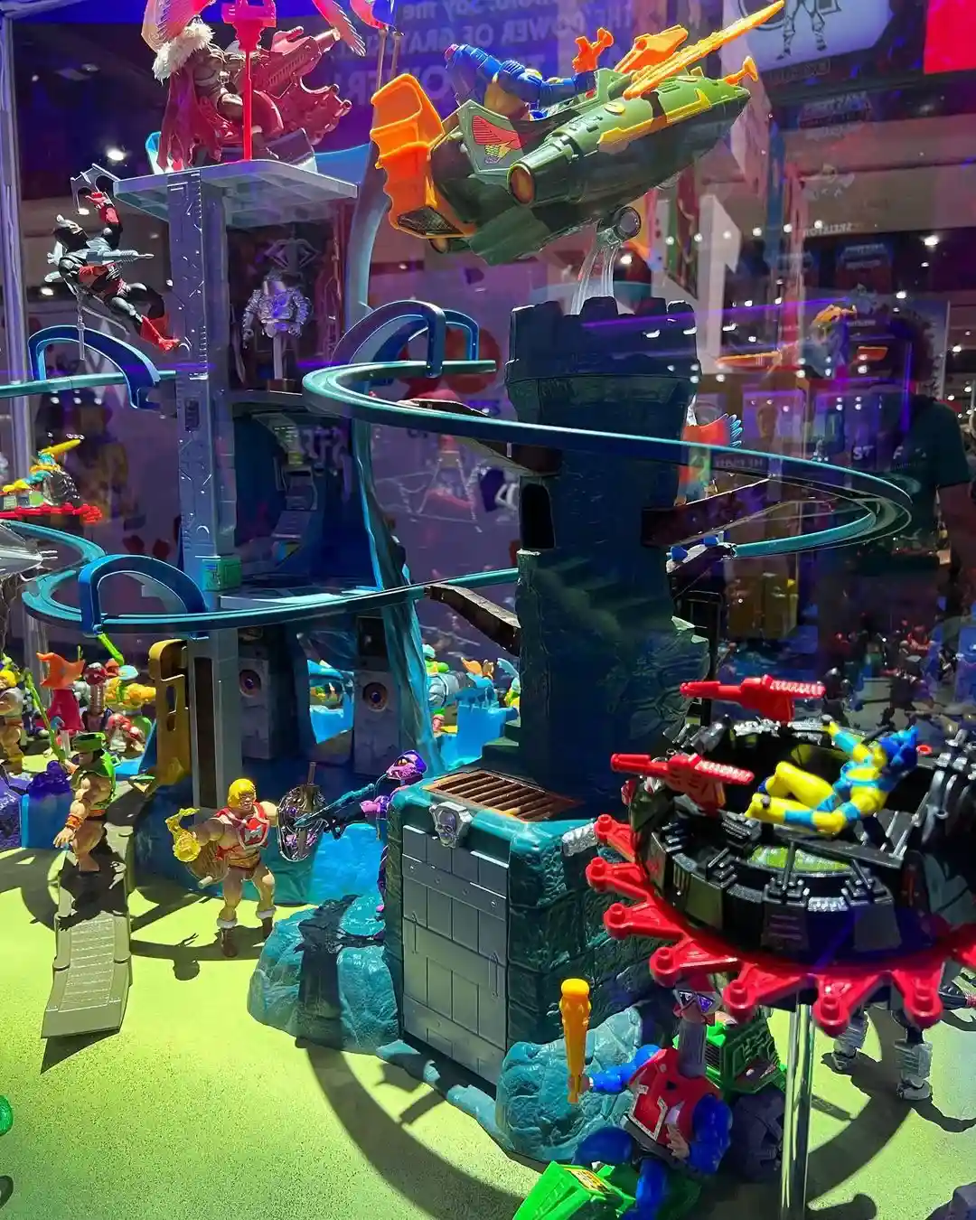 Our minds were literally blown when the Eternia Playset was seemingly leaked ahead of preview night at San Diego Comic Con so we spent hours scouring Instragram and Twitter for the best of the best photos of this iconic piece of MOTU history! Who better to walk us through this glorious playset than Skeletor himself! As a side note, Skeletor got everyone up to speed on the SDCC Mattel reveals last MOTUesday in a very creative presentation! This must be how Skeletor presents his plans for Eternia domination, but we digress! The Mattel booth was filled with 6 display cases but the one that stole the show was the literal centerpiece, Eternia! Set off in a large battleground display, this playset made a massive footprint and impact on the people that got to see it live and the ones that were watching from a far. The display case featured a wasteland of Eternian carnage that featured the Masters of the Universe taking on not only Skeletor, but the infamous Snake Men.