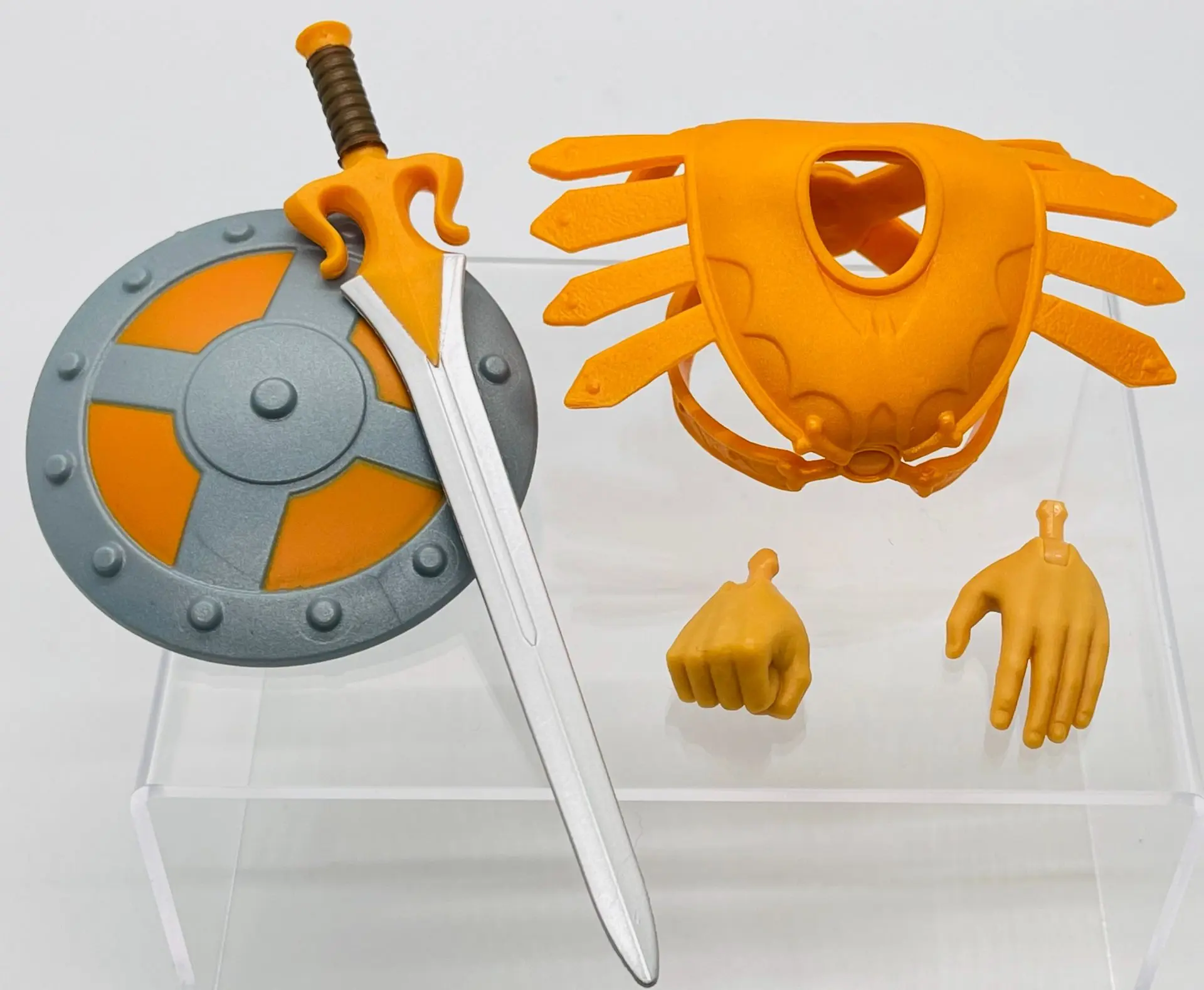 Faker comes packed with some extra hands (a closed fist and an open chopping hand), a shield (which is reused from the Wave 1 He-Man, and an orange piece of chest armor.