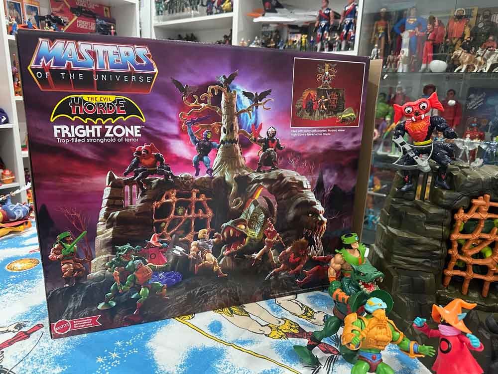 Fans have been asking for the Fright Zone playset for years and finally Mattel answered the call! We were so excited when it was revealed at New York Toy Fair 2025. The Fright Zone looks freaking amazing and is everything we could have asked for in a playset complete with a fully articulated Dreadful Dragon creature and evil tree! This playset has been teased numerous times on MOTU Origins card and box art and I can’t believe after 5 years of the MOTU Origins line, we finally have one in hand! So without further ado, let’s check out these incredible in hand image of the new Fright Zone MOTU Origins Playset by yours truly, The Toy Sorceress!