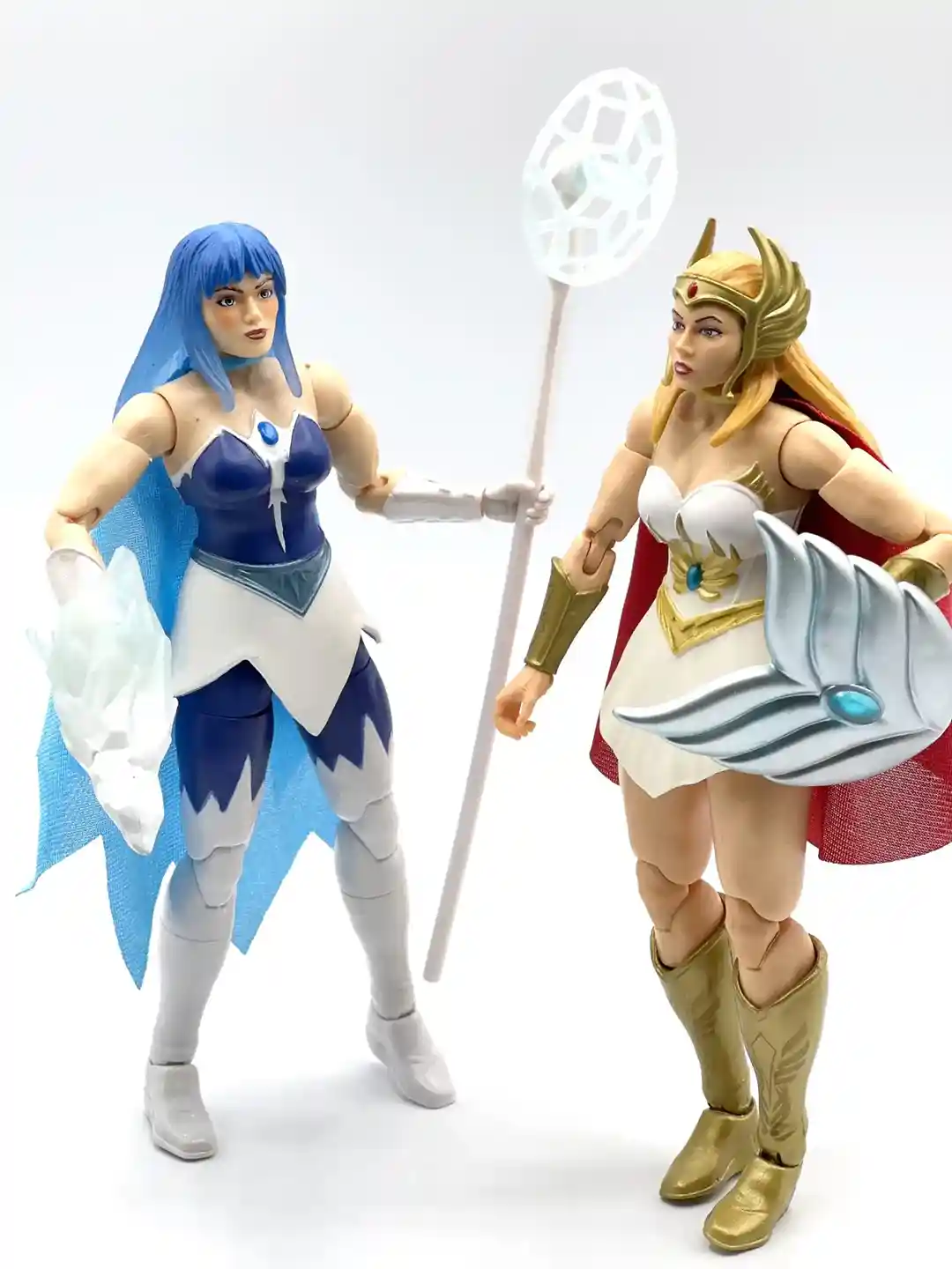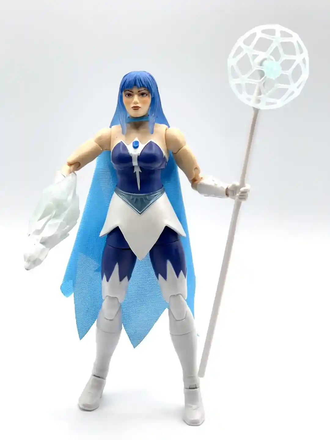 Her staff is an ice blue and spins, making this the first fidget spinner for the Masterverse line! The shaft of the staff is a solid white, which sets off the ice blue coloring of the circular frost attachment at the top.