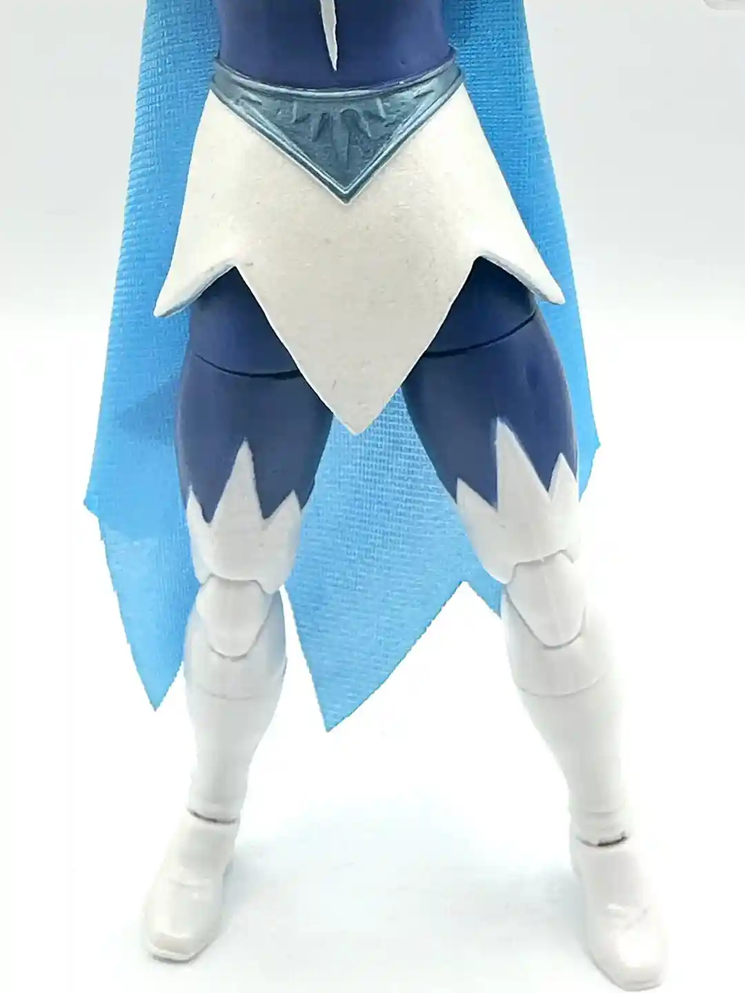 Her belt design features some cool ice effect sculpting details. Her belt is also a deep teal color, setting it apart from the rest of the figure. She has a white skirt around her waist with no extra frills.