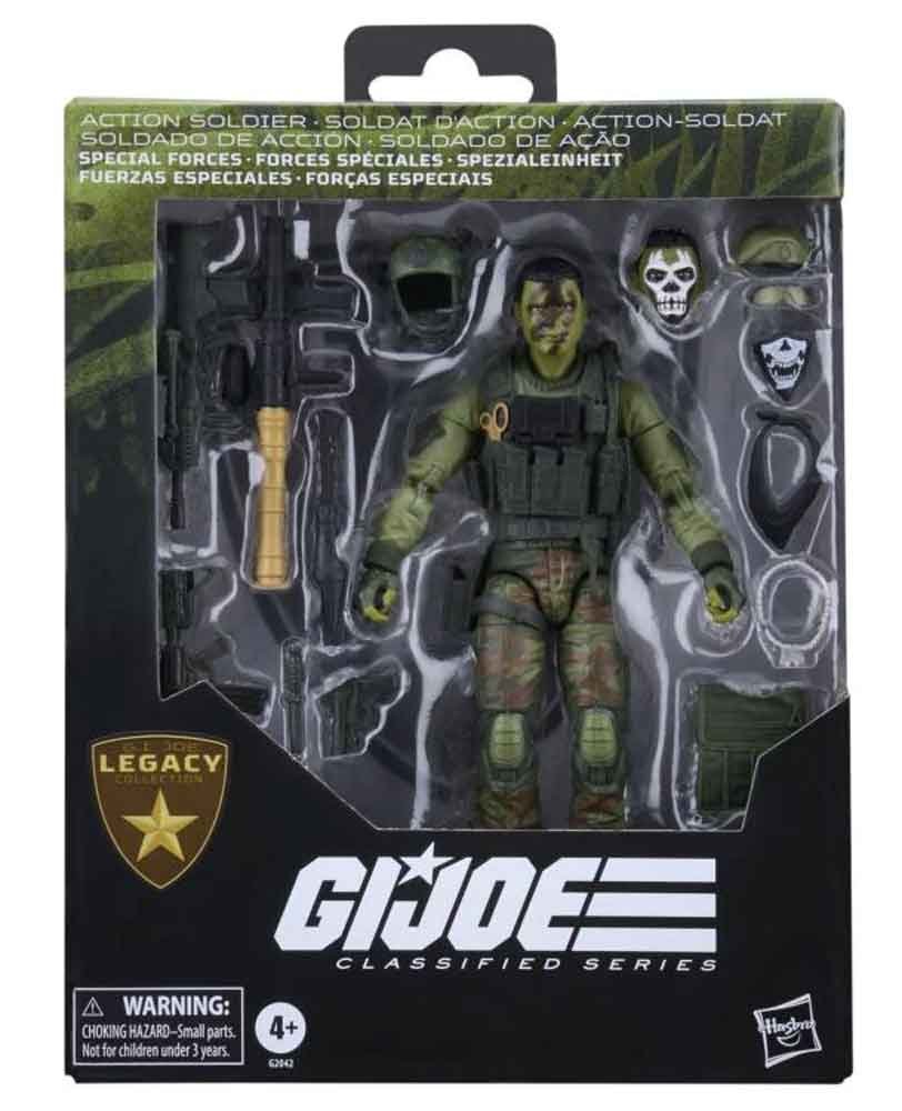 Official Product Description: G.I. Joe debuted in 1964 with the Original Action Figure which left an indelible impression on generations and launched a toy franchise that continues to thrive finding new fans. The G.I. Joe Classified Series Legacy Collection continues that tradition by celebrating and recognizing everyday heroes such as soldiers and first responders who brave danger to save lives, protect our communities, and strive to make the world a better place. New to the G.I. Joe Classified Series Legacy Collection line, Action Soldier – Special Forces comes ready for adventure, with multiple points of articulation for high poseability. This Special Forces figure is bursting with 16 character-inspired accessory pieces including alternate head, beret, glasses, mask, bandana, dog tags, backpack, helmet, knife, RPG, and weapon accessories. Action Soldier – Special Forces display courage, integrity and perseverance to support the full range of military operations.