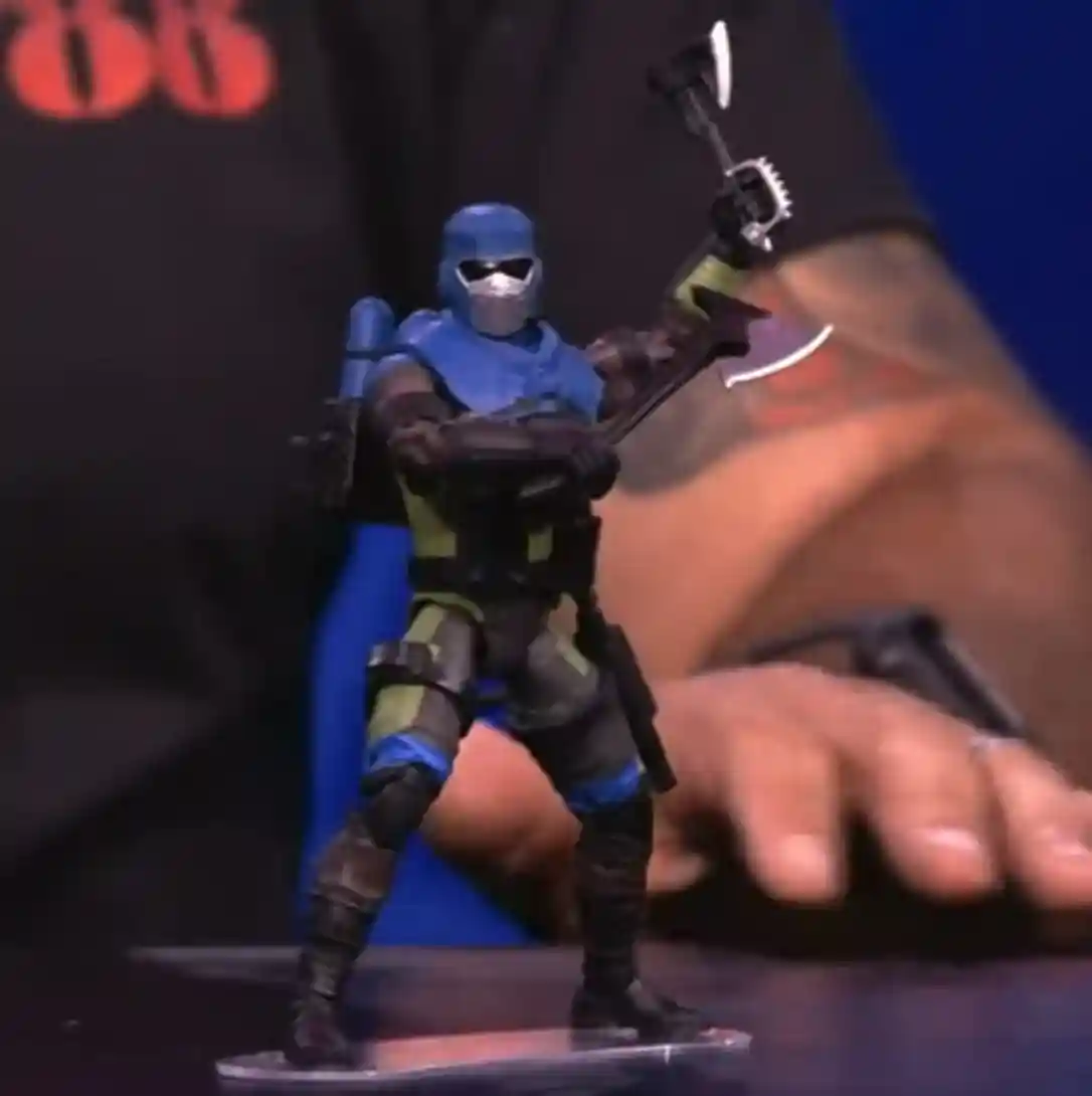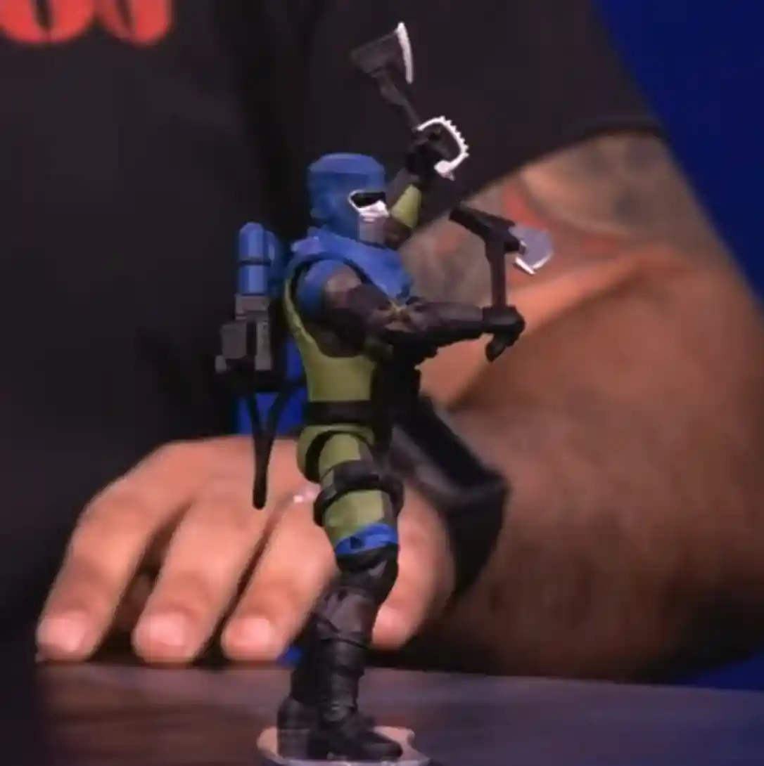 One of GI Joe’s most iconic characters, we finally get Rock N Roll coming to the line. His digital render looked amazing. He has an old Surfer vibe and heavy weapons look. He included full sleeve tattoos in faded blues. He comes with variant hands with skull tattoo, a heavy blaster with functional bi-pod and ammo belts strapped across his chest. This one looks to be a very exciting character and we can’t wait to see what the production figure will look like.
