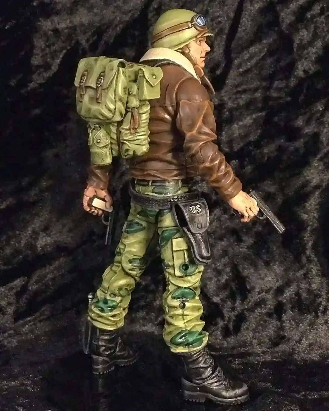 Falcon is dressed in his classic green camo commando design. He comes with a removable beret and removable scarf, and very close to the original ARAH design. He also includes his heavy blaster, coms backpack, and overstepped web gear.