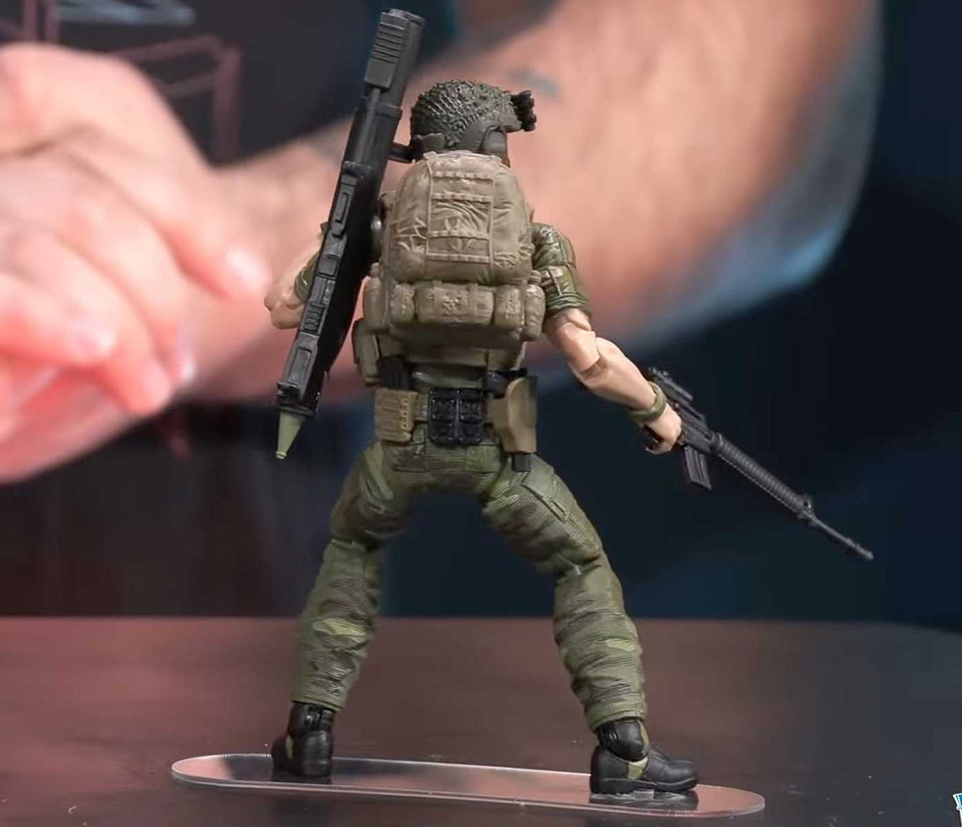 Footloose came out so much better than his digital render! His head sculpt looks unique, and not like Pedro Pascal’s. His cammoflauge came out stunning and his uniform details really pop!