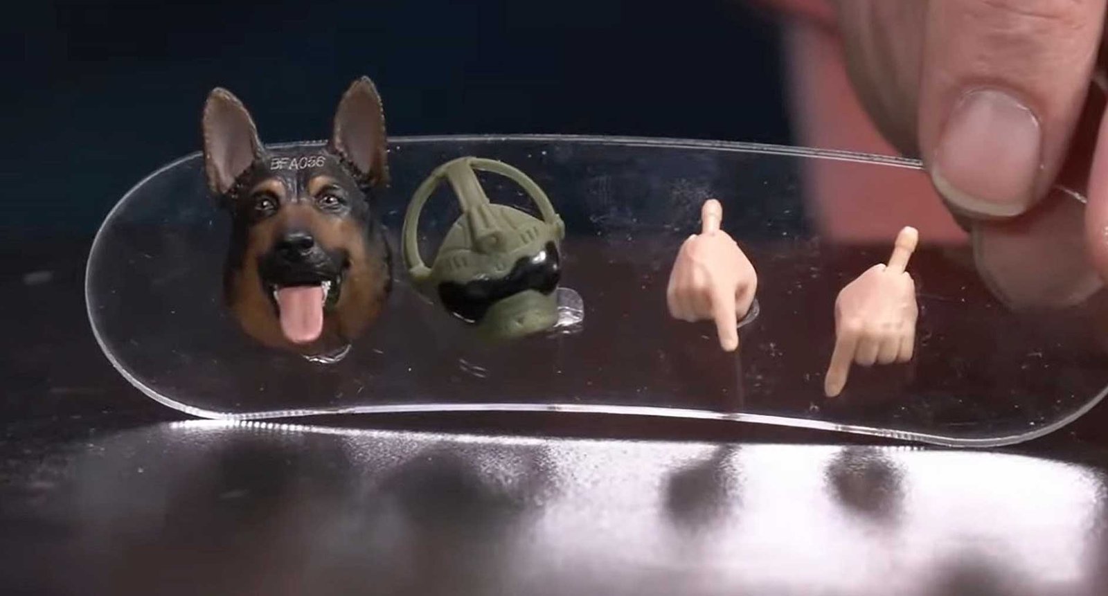 Law and Order comes packed with a gaggle of hands that are real gestures for a police dog. The set also comes with Law’s helmet, pistol, uzi, batton, knife, and handcuffs. Order comes with an alternate portrait and a mask!