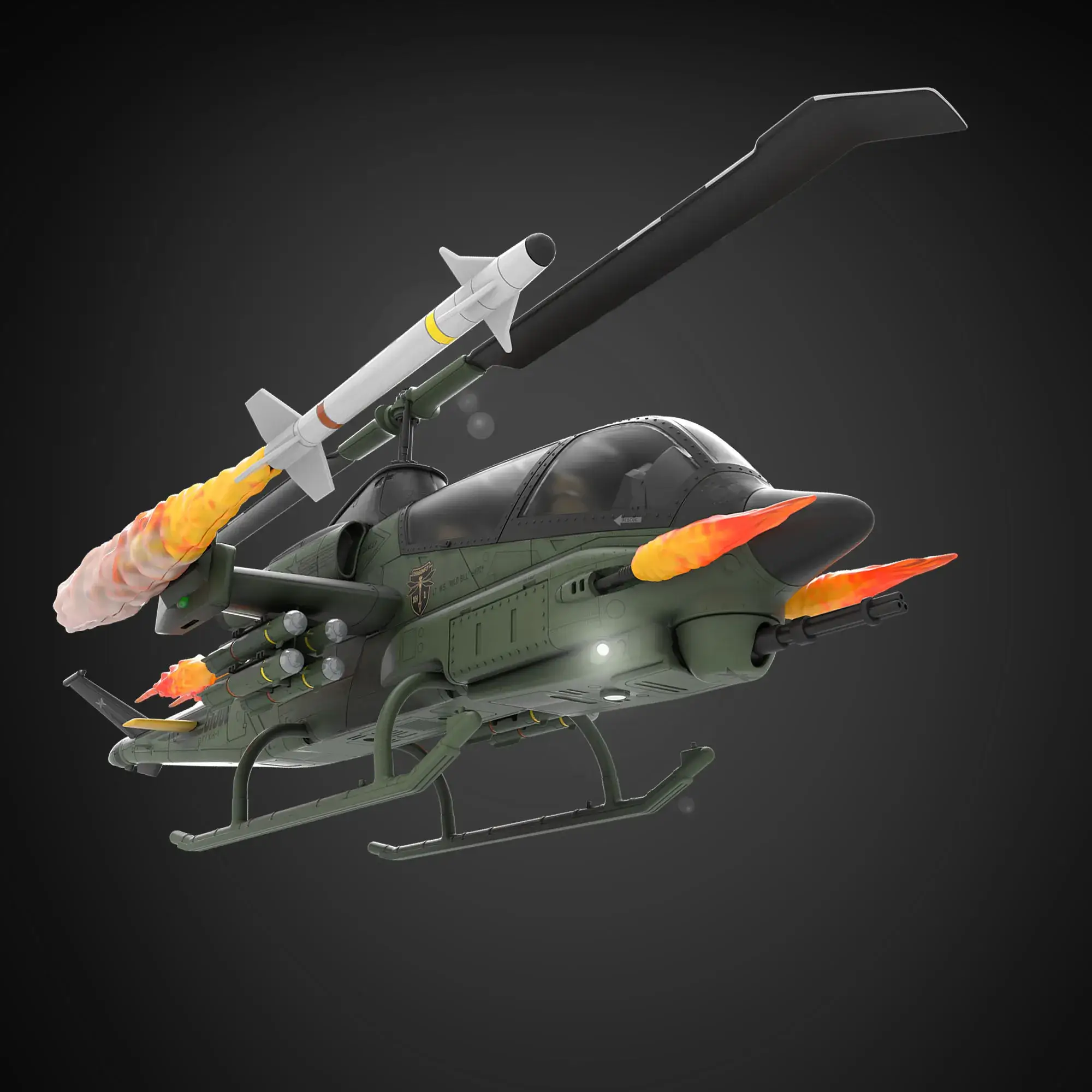 · Cannon Details: The 25MM Dragonbreath Rotary Nose Cannon rotates and can pivot up and down; and twin X-551 Mini-Cannon details below the cockpit increase the XH-1’s powerful attack capabilities.