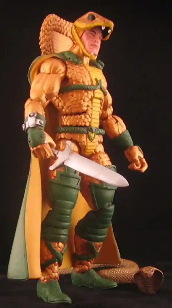 There have been several custom GI Joe Classified Series scale customs made of Serpentor over the years and here are a couple of our favorites. They both encorporate the classic snake helmet from the vintage figure design as well as the snake design on the waist piece. Both customs also feature that crackled snake skin look that we hope will make it into the final design, if this is indeed an actual prototype that was leaked.