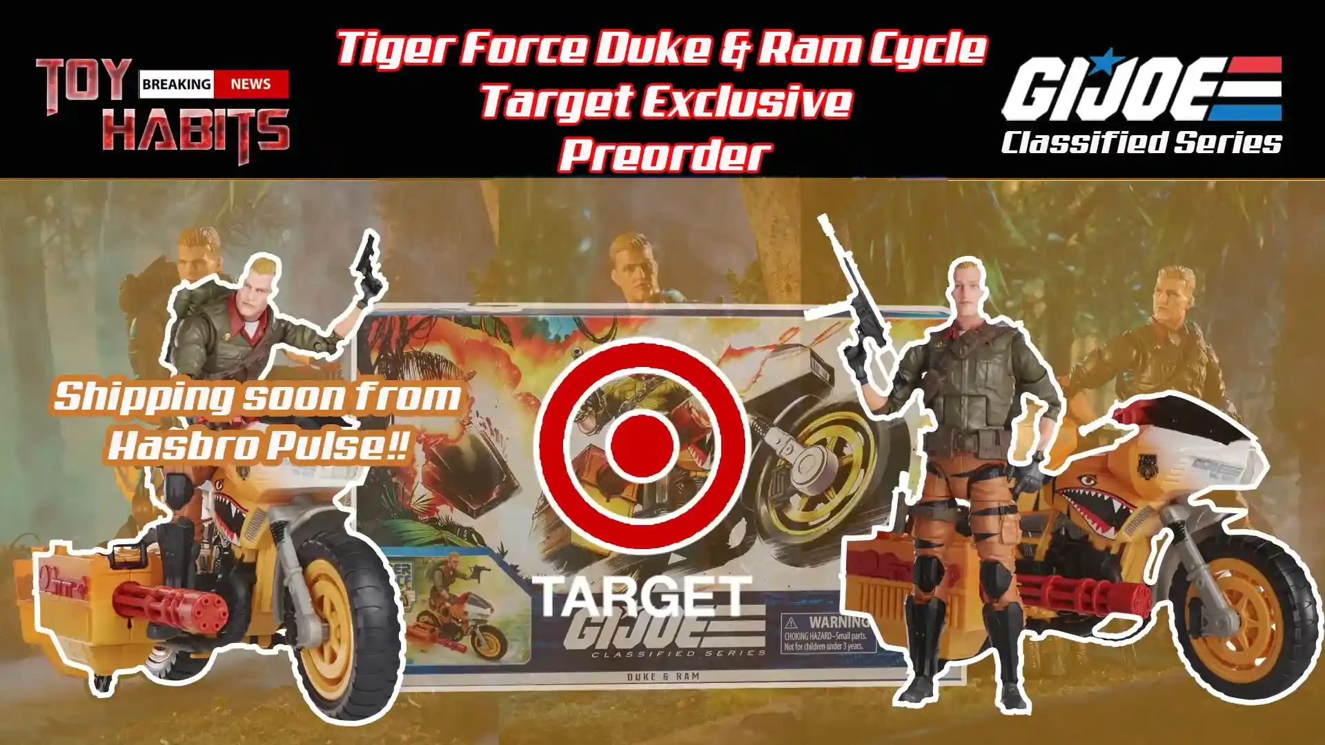 BREAKING NEWS: Tiger Force Duke & Ram Cycle GI Joe Classified Target Exclusive Preorder IS LIVE! Finally, out a surprise move Hasbro releases GI Joe Classified Tiger Force Duke & Ram Cycle for preorder! Preorders are now live on Target.com and Hasbro Pulse. Hasbro Pulse released this in limited numbers to Hasbro Pulse members at 10am PST today and then opened to everyone else at 11am PST. But as of writing this article, Hasbro Pulse is currently sold out. But we are providing you with the Pre-Order information for Target below.