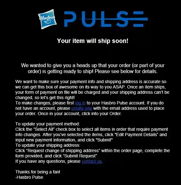 Hasbro Pulse has begun to send “shipping soon” notifications to collectors who purchased Tiger Force Duke and the Ram Cycle thru the Hasbro Pulse Website. In the meantime, collectors who pre-ordered from Target.com are still waiting for their orders to ship. But consumers are already finding them on Target store shelves, in the meantime the Target website still shows Tiger Force Duke and the Ram Cycle as a Pre-Order item. It’s frustrating to all when product is being placed on shelves for weeks, but not being shipped out to those who pre-ordered. But if you pre-ordered from Hasbro Pulse, you will get getting Duke soon! You can still pre-order TF Duke and the Ram Cycle from both Hasbropulse.com and Target.com
