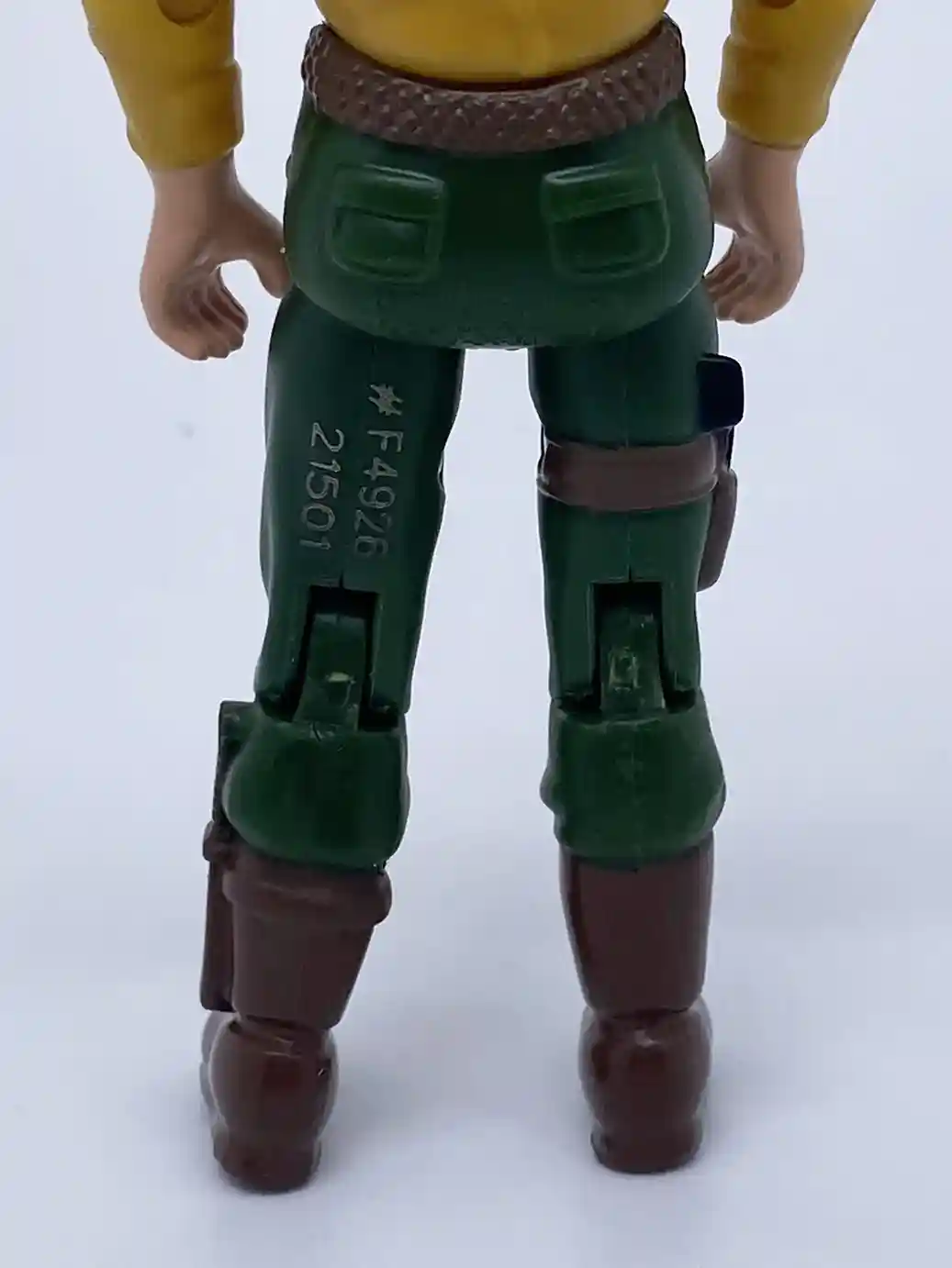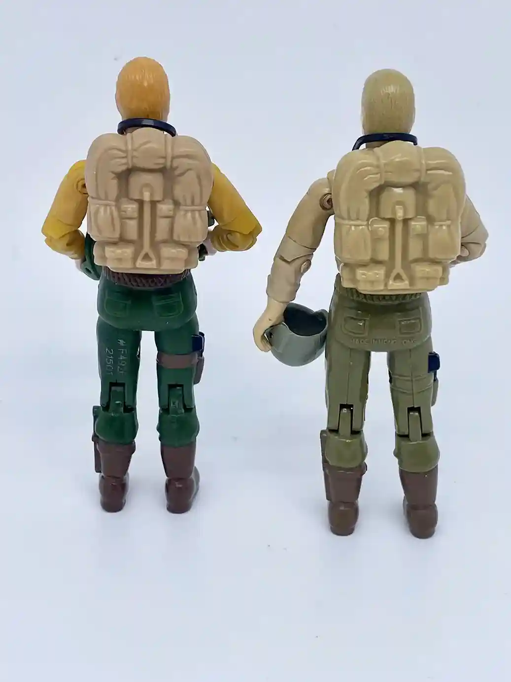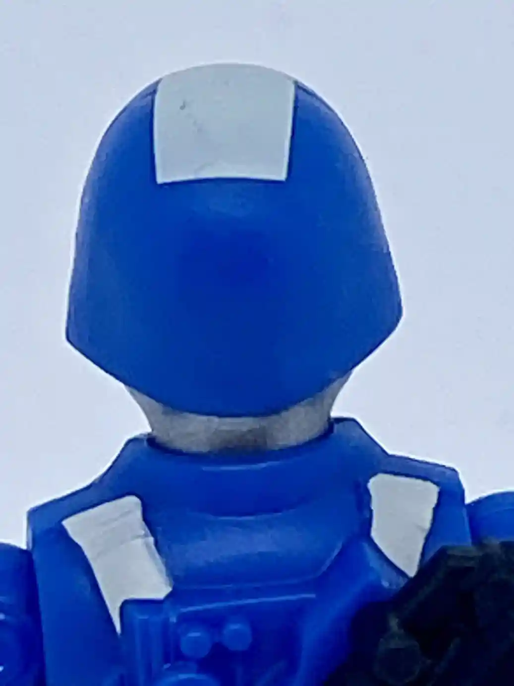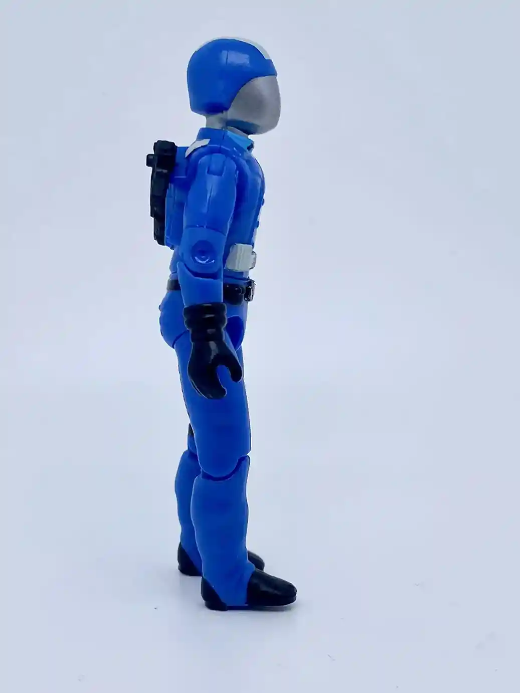 His back features the same molded hair dryer gun stow away feature as the vintage figure and has some molded accents. You can also see some white backpack straps painted on his shoulder and waist areas.