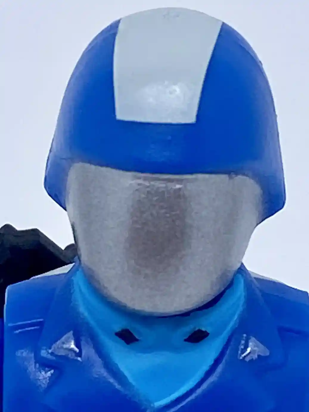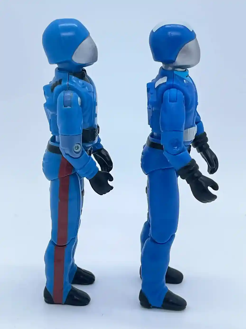 Dressed in a traditional darker blue outfit, the vintage 1983 Coco did not directly resemble the cartoon color scheme but was rather his own design. He included a red stripe down his pants legs and they omitted the white stripe on his helmet as seen in the cartoon. His outfit was a more muted darker blue and he had on a black shirt under his jacket. Both waist belts were also black. But as we mentioned above the new Retro Coco is dressed in his Sunbow inspired bright blues with additional paint apps that make him look like he stepped right out of the cartoon!