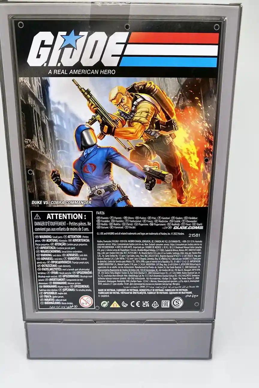 Yooooooo Joe! The nostalgia juices are flowing all over the place with this new G.I Joe Cobra Commander vs. Duke Retro Collection O-Ring 2 Pack! It is absolutely everything we could have asked for in a new G.I Joe O-Ring release! Hasbro has totally knocked it out of the park on this set! Not only are the new figures color schemes’ inspired by the Sunbow cartoon series, but the massive bevy of accessories that come with these new O-Ring figures, are straight out of GI Joe The Movie animated feature film! The quality of the figures are top notch. No more broken thumbs, cracked elbows or figures laying in half on your shelf! The improved plastics and figure construction along with the food grade silicone O-Rings will eliminate all those issues and make these the perfect new O-Ring figures we always wanted! The G.I Joe team at Hasbro is really start to listen to fans as they have improved the thickness and quality of the card backs for those MOC collectors out there! Keep it coming Hasbro, you are doing a spectacular job!!! We are going to take a deep dive into this new GI Joe Cobra Commander vs. Duke Retro O-Ring 2 pack review! How many of you are singing the theme song in your head right now? I know I am “G.I Joe… A Real American Hero…. G.I Joe is there…. G.I Joooooeee….. ”