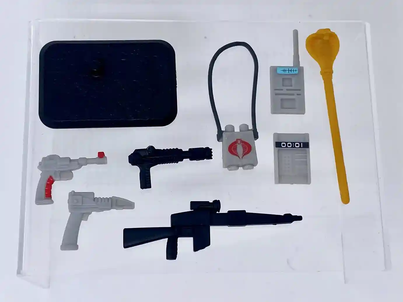 Cobra Commander also comes packed with a ton of accessories They are a mixture of vintage inspired accessories and G.I. Joe The Movie inspired accessories. Let’s take a look at what Coco came packed with.