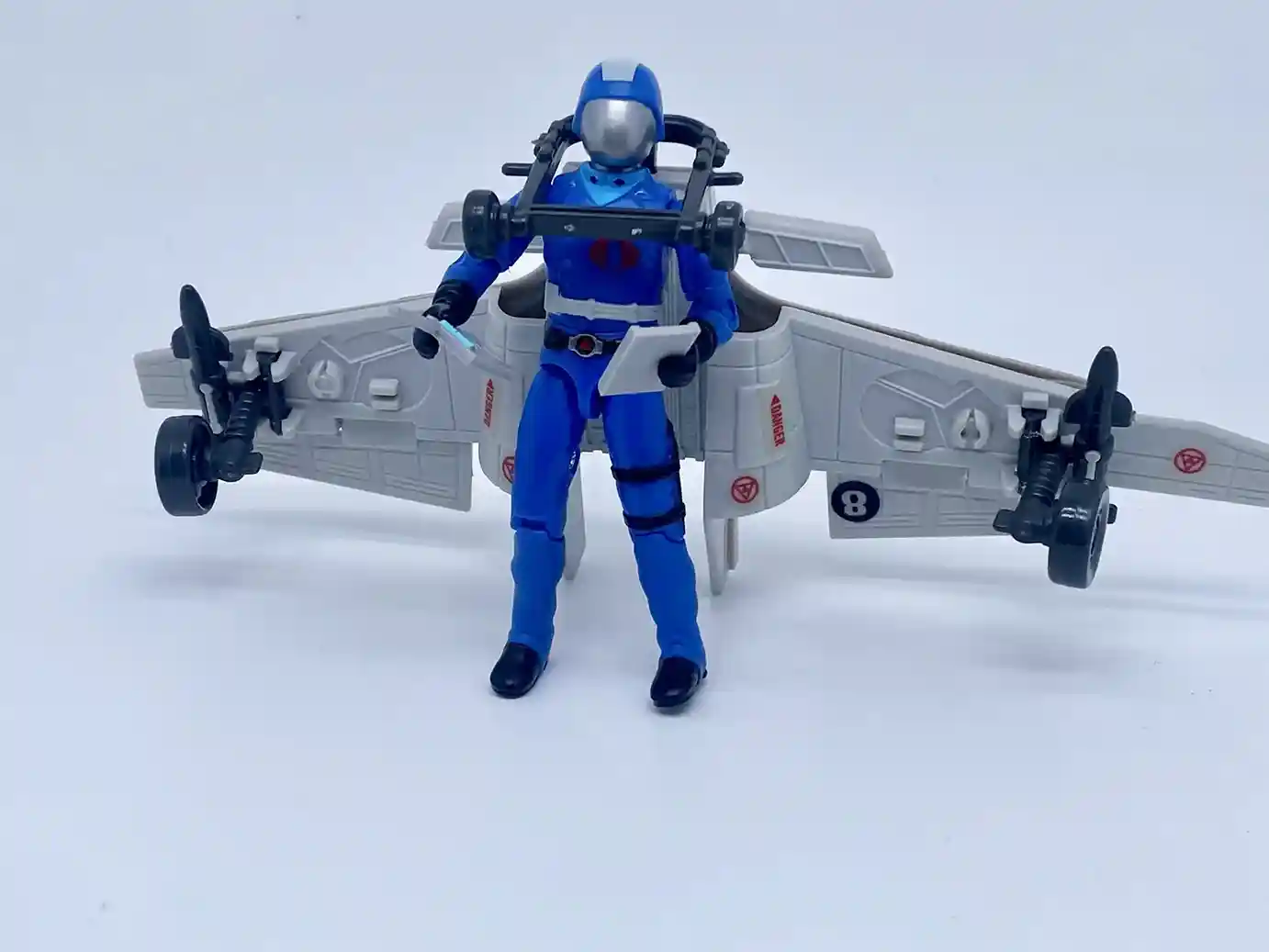 The G.I. Joe: The Movie was released in1987 and was an animated film spin-off from the 1980’s Sunbow cartoon series G.I. Joe: A Real American Hero, picking up where the cartoon series ended. These new Retro O-Ring figures are heavily inspired by this movie in their color schemes and included accessories. In the opening sequence of the film, Destro hands over a bomb and detonating device to Cobra Commander which he plants with his Cobra CLAW. Then Duke flies in on his jet pack and disarms it, then is seen flying up to the Statue of Liberty, carrying the American flag and meets the rest of the GI Joe Team! Duke includes the jetpack, chest straps and American Flag he is seen in this opening sequence. As well as Cobra Commander comes with the bomb and detonating device that Destro hands him. All we need now is the Cobra CLAW and we will be all set!!! Below are fun photos with my vintage Cobra CLAW…. hint hint Hasbro, give us a CLAW!