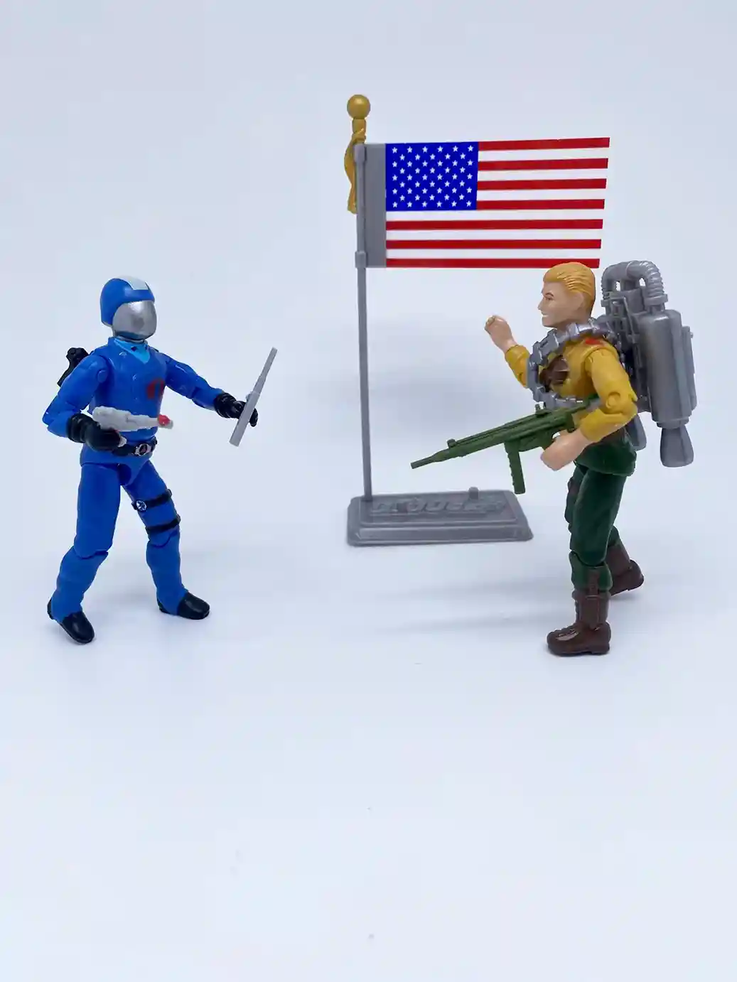 - silver GI Joe themed figure stand