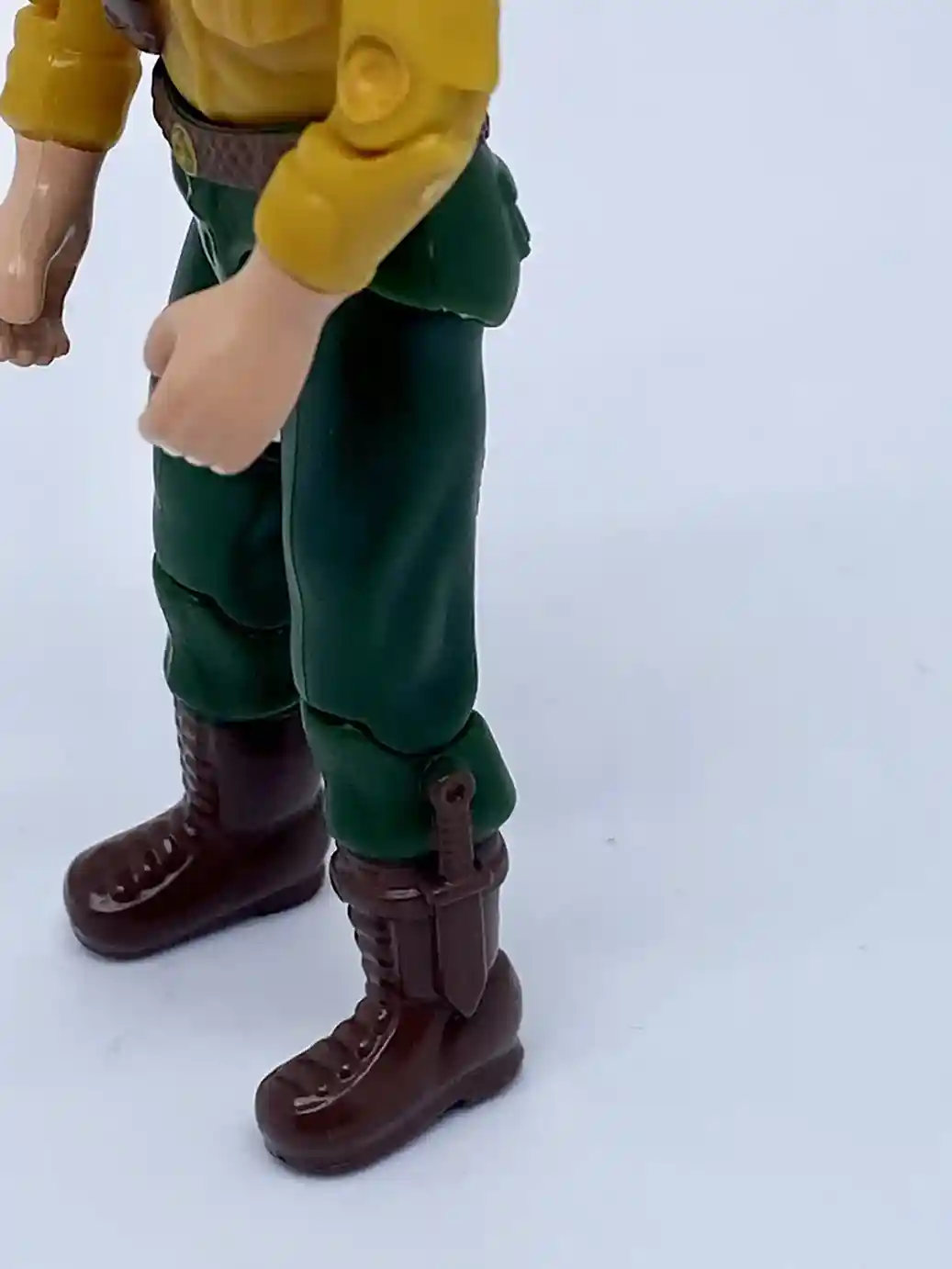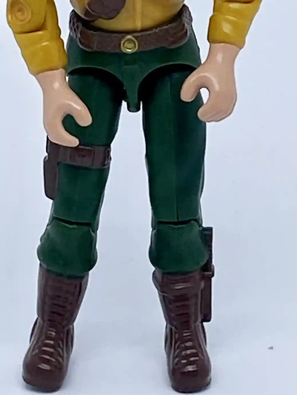 His legs are also modeled after the vintage figure, but here is does not have the red stripes on his pants, rather just blue pants and black shoes. He does have the black dagger strapped to his left leg just like the vintage action figure. He also has 2 small pockets on his butt checks…. Ya I said butt!