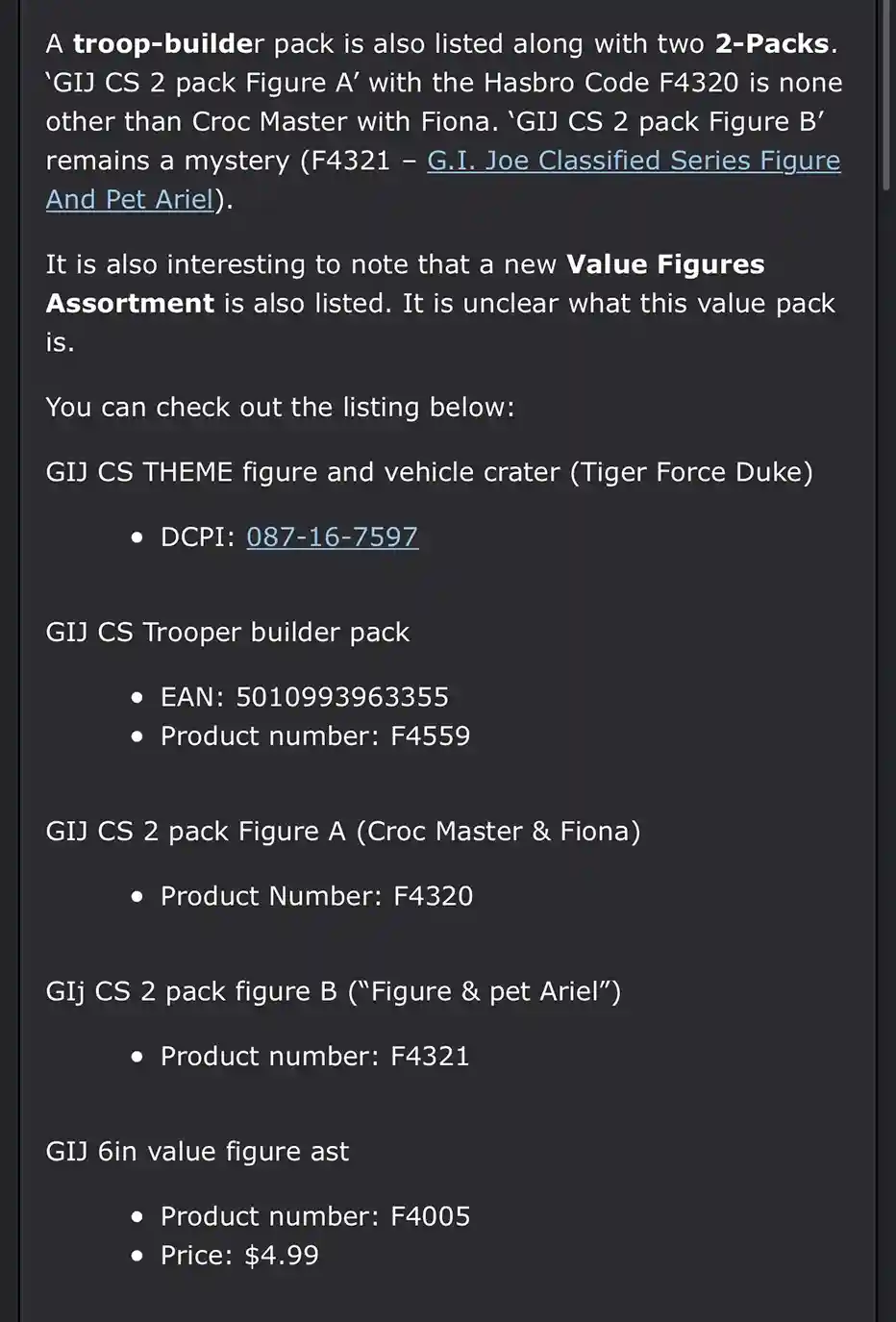 Previous to these reveals, we came across some GI Joe Classified listings on Walmart.com with code names Centurai, Rigel, and Betelgeuse on Walmart. So, these 3 are the most likely candidates to go up for pre-order that we can hopefully see this coming Tuesday! Links are below: