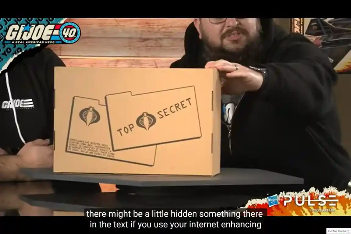 During the 40th Anniversary Live Stream, Hasbro revealed the very special Transformer G.I. Joe Crossover Megatron HISS Tank Set. While they were displaying the box, they mentioned there might be something hidden in the text if you use your internet enhancing tools. If you then read the message it says ” SURVEILLANCE HAS DETECTED SPIES SCOUTING COBRA BASE. UNAUTHOIRZED VEHICLE IS IDENTIFIED AS SUBJECT B. BE PREPARED TO INTERCEPT, THEIR STING IS SHARP, BUT WE ARE POISED TO STRIKE.” We have blown up that image to try to decipher what we think it might be a Bumble Transformer Crossover of some sort. Bumblebee makes sense because he is the character that has been focused on lately on the Autobot’s side. He has his own movie coming out, so this makes total sense when lined up with the obvious clues in the secret message. The question is what will he transform into and who will he come with? If a retro O-Ring Baroness comes with the HISS Tank, then we think it might be either retro O-Ring Tiger Force Roadblock or Flint with Bumblebee because we are already getting Duke in the above mentioned 2 pack. And it would transform into a smaller Joe vehicle…Perhaps a Tiger Paw, or a Tiger Sting.