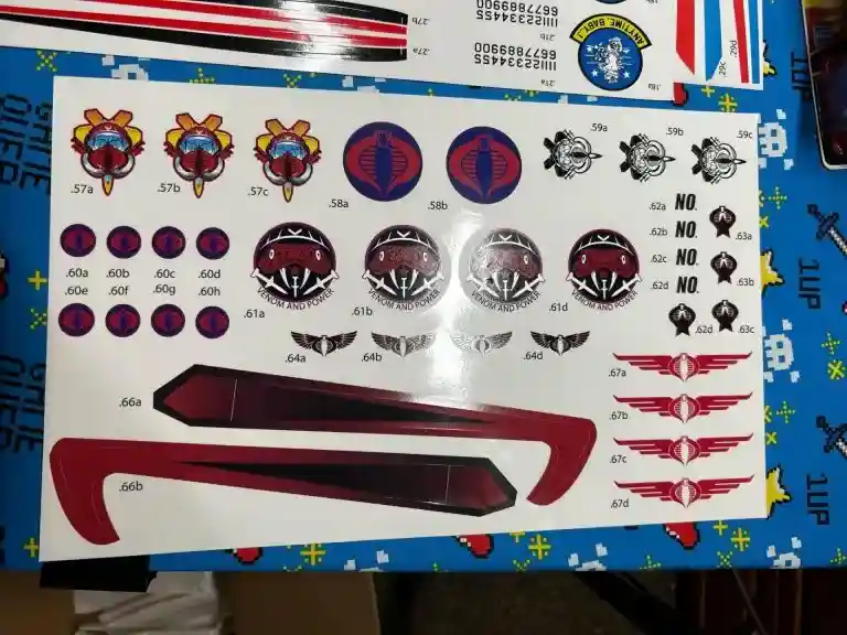 We also get close up photos of all those incredible decals that come included with the Skystriker! If you recall, there was a Cobra Hack where Cobra took over the HASLAB campaign, and that included addition Cobra themed decals for your Skystriker!