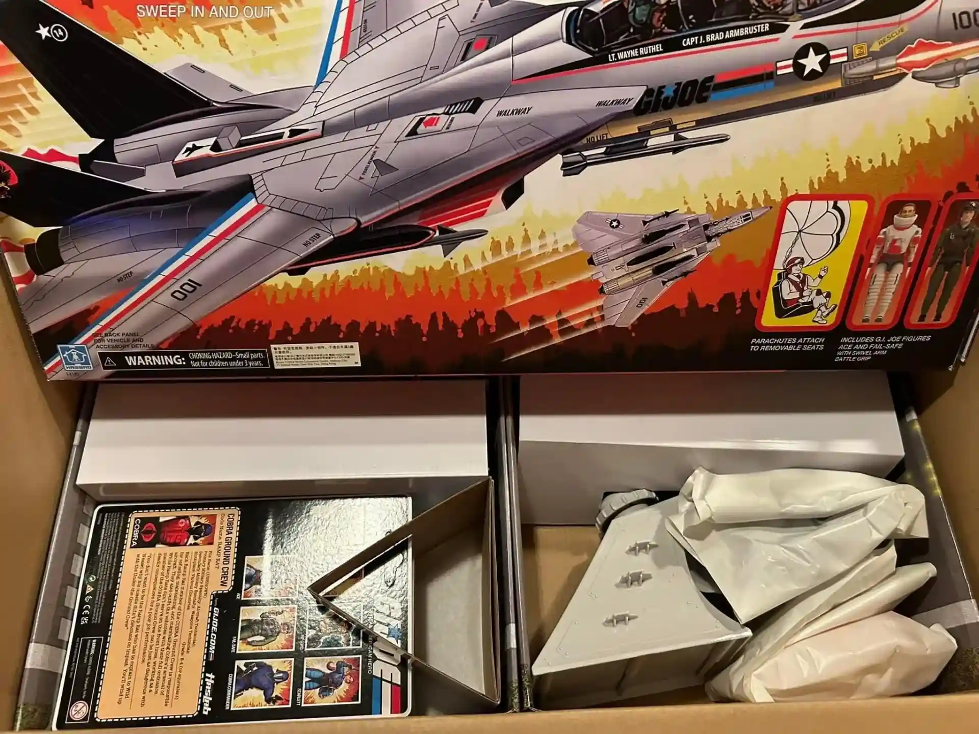 You can see that the Skystriker box is packaged in that beautiful vintage style packaging with unique HASLAB version artwork that includes both ACE and FAIL SAFE on the front of the box. The exclusive figures are then packaged very carefully underneath.